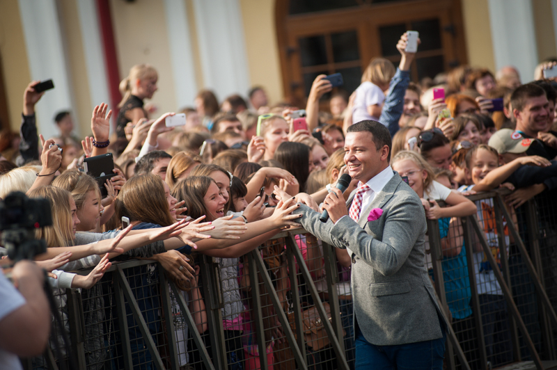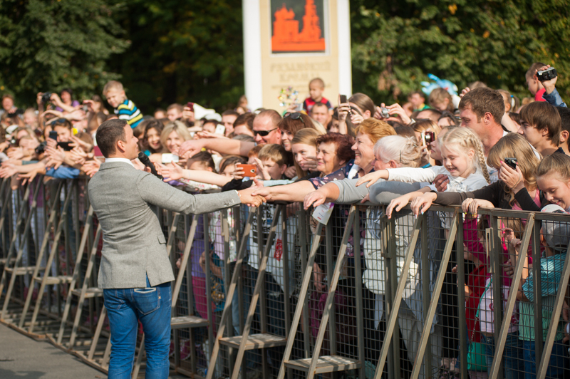 Официальные лица недолго занимали публику серьёзными беседами и быстро уступили место ведущему праздника Александру Олешко. Актёра здесь хорошо знают, а сам Олешко отлично знает Рязань. По его собственному признанию, в ранней молодости он частенько бывал в нашем городе, гулял между есенинских берёзок и мечтал о славе.