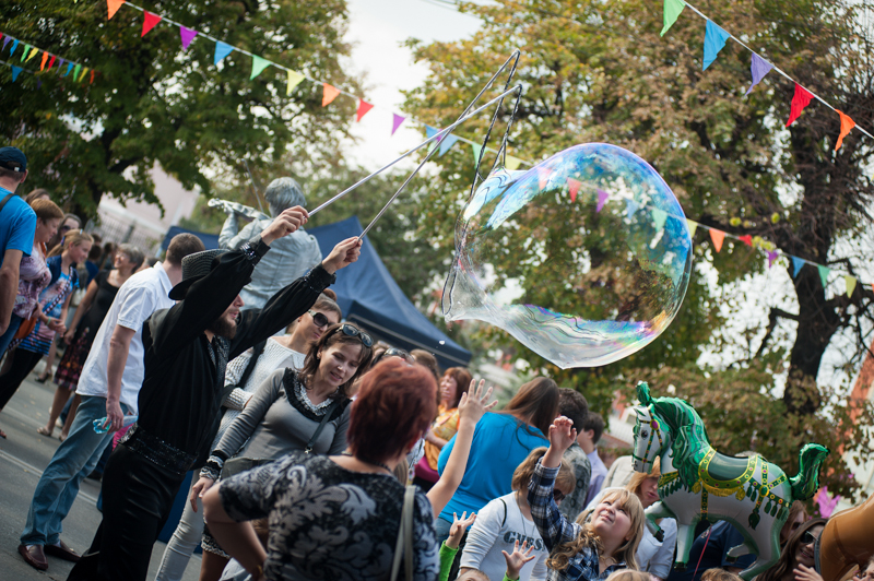 13 сентября в Рязани раскинулся весёлый и яркий праздник «Грин-парк. Территория детства». На целый день Соборная улица превратилась в городок, где заправляли уличные артисты, аниматоры и, конечно же, дети.