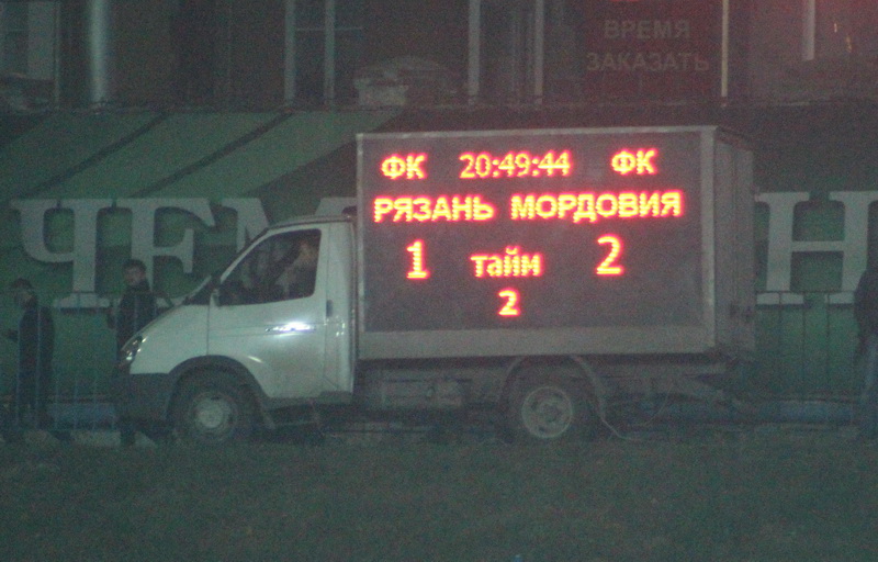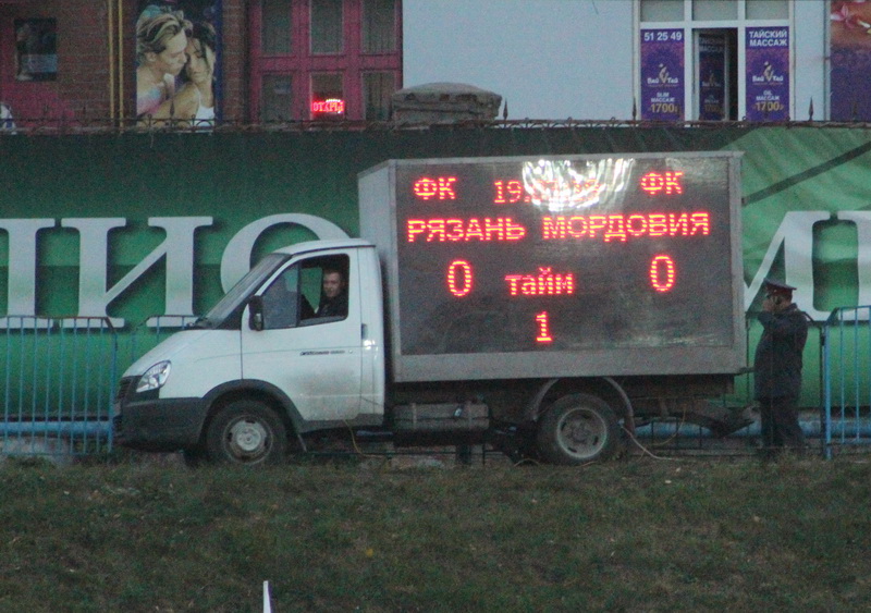 Первая приятная неожиданность: вместе с билетом каждый болельщик получил красочную программку матча с небольшим постером ФК «Рязань». Те, кто вошёл на спортивную арену, удивились ещё раз, увидев световое табло, которое было установлено на грузовой «Газели». Новшество тут же окрестили рязанским ноу-хау и оно стало одним из достопримечательностей матча.