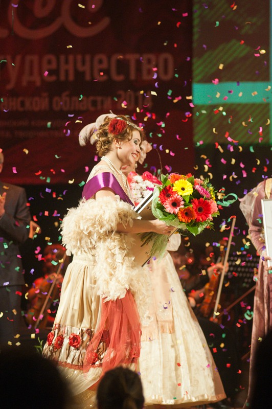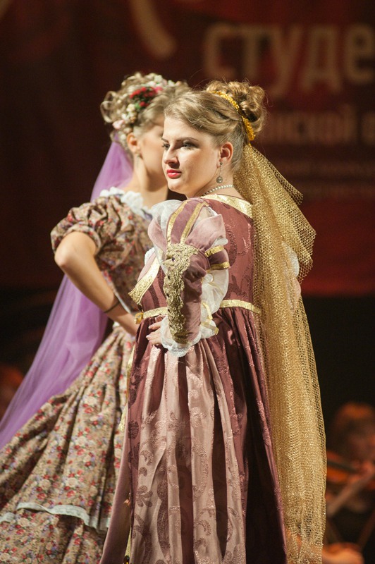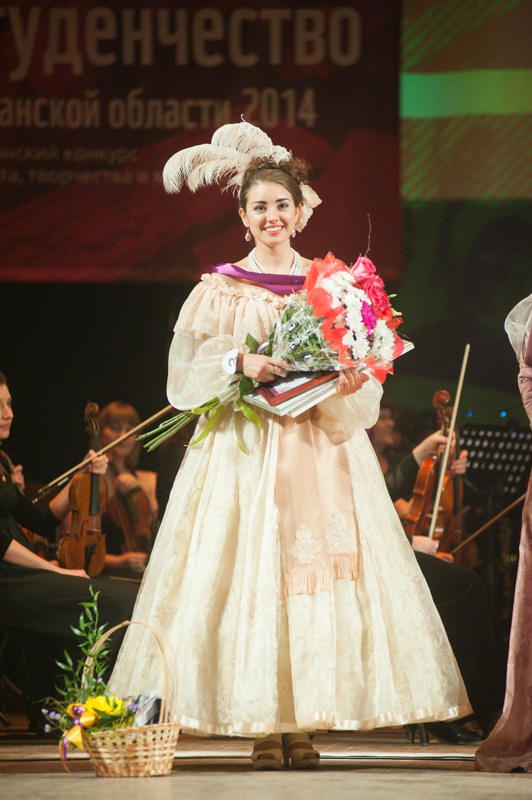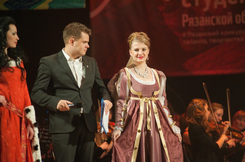 В минувшую пятницу, 20 ноября, в Концертном зале имени Есенина Рязанской филармонии вновь выбрали лучшую студентку. В состязаниях приняли участие девять девушек из авторитетных вузов области и филиалов иногородних учебных заведений: Маргарита Гулевич (РГУ), Елена Кобозева (РГРТУ), Анастасия Безбородова (РязГМУ), Виктория Пичугина (РГАТУ), Оксана Елистратова (Академия ФСИН), Анастасия Максимюк (МВД), Александра Аверина (МАМИ), Алёксандра Ёжикова (МЭСИ) и Кристина Федянина (МУ имени Витте). В ходе подготовки каждая из них прошла серьёзное обучение от занятий по актёрскому мастерству до уроков ораторского искусства. Пришлось позаниматься и музыкой — одним из испытаний соискательниц стала «Угадай мелодия» в духе ренессанса: девушкам требовалось опознать популярные классические произведения в живом исполнении Рязанского губернаторского оркестра. К чести участниц и на радость музыкантов, состязания были пройдены достойно. В ходе конкурса ораторского мастерства соискательницы рассказали зрителям о тех людях, которыми они гордятся и берут себе в пример. В их число вошли первая женщина-председатель Центробанка России Эльвира Набиуллина и Михаил Ломоносов, Екатерина II и паралимпийская чемпионка Рязанской области Светлана Коновалова. Одна из конкурсанток рассказала о любимом папе, другая напомнила о подвиге рядового школьника, который спас провалившихся под лёд девочек. Имена великих исторических личностей переплелись с делами наших современников.