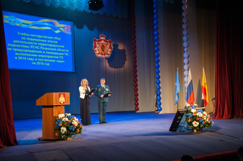 В Рязани подвели итоги деятельности регионального ГУ МЧС в 2014 году. Учебно-методический сбор состоялся 17 декабря на украшенной Театральной площади, обсуждение итогов и награждение наиболее отличившихся произошло на сцене драмтеатра.