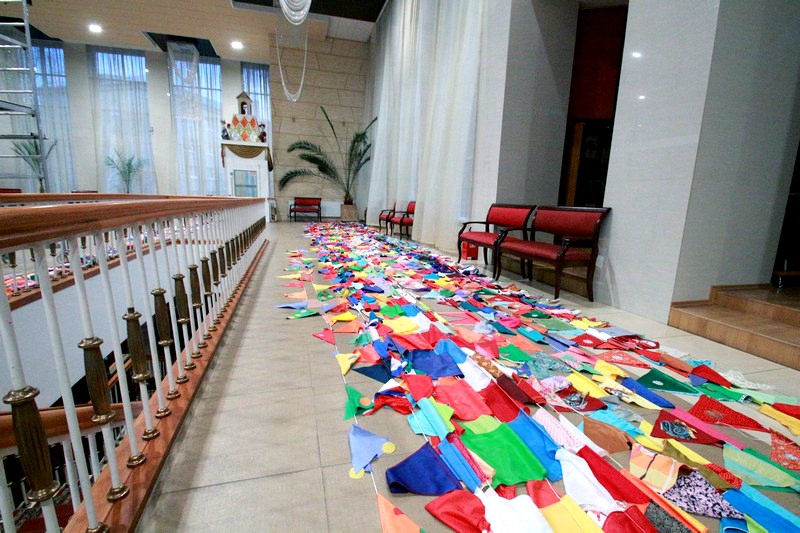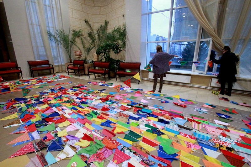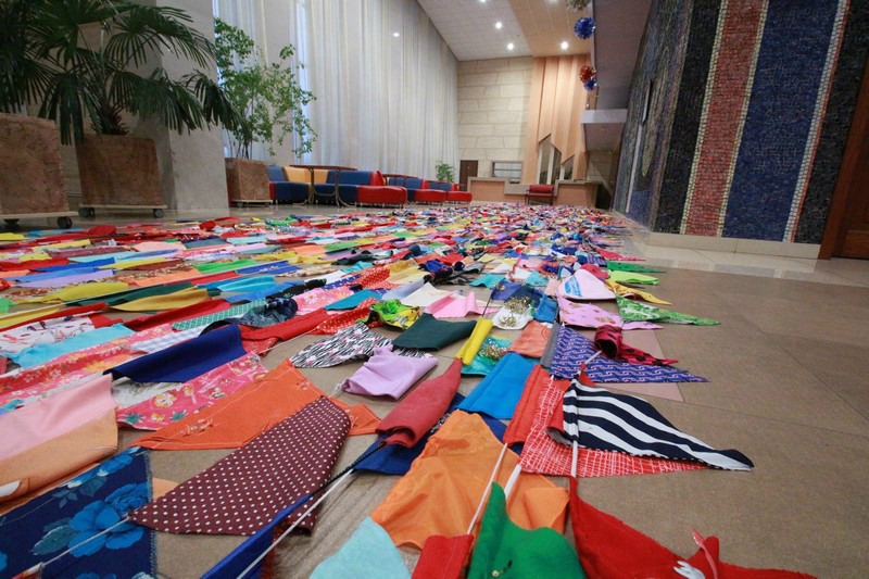 Помимо общей протяжённости гирлянды впечатляет и та фантазия, с которой подошли к своему рукоделию маленькие авторы, а также уровень исполнения. Помимо традиционных ярких флажков ребята сделали флажки с дедами морозами, снеговиками, снежинками, новогодними сюжетами… Среди детских и довольно наивных поделок затесались и вполне взрослые гирлянды, выполненные старшеклассниками, что стало для организаторов полной неожиданностью.