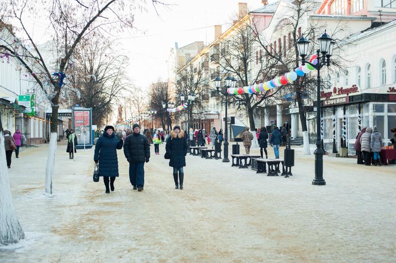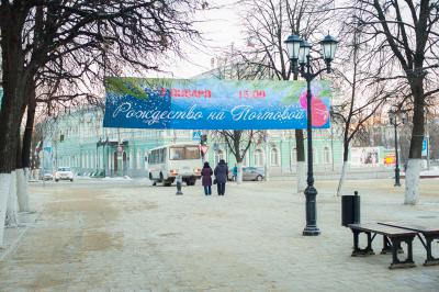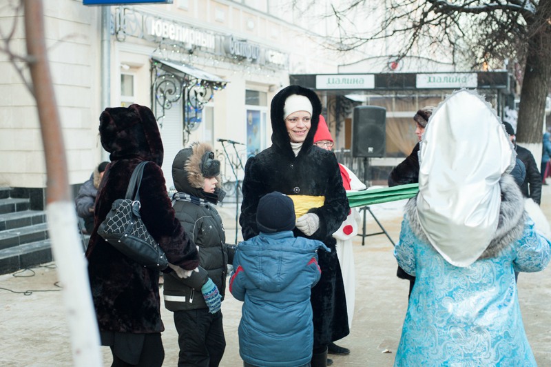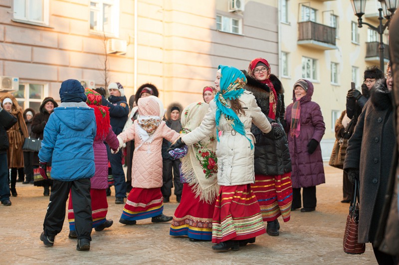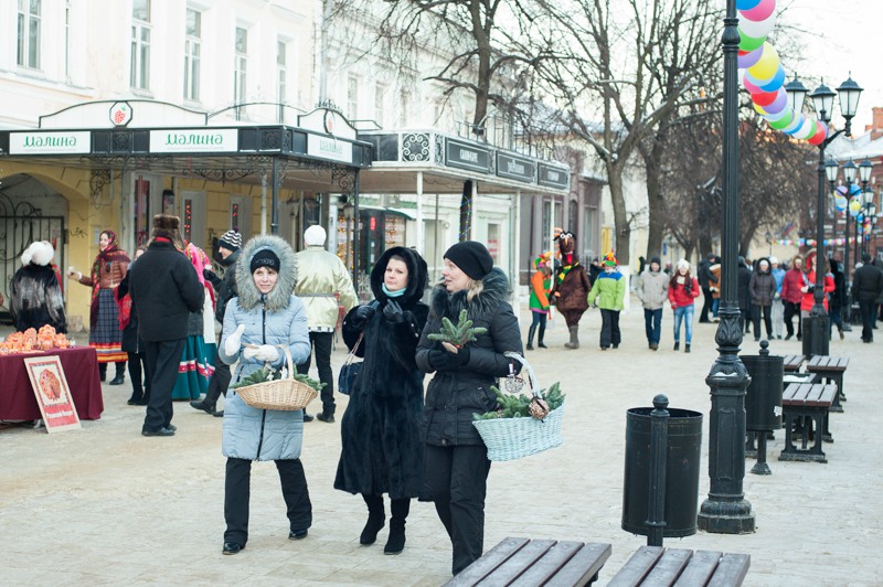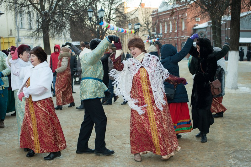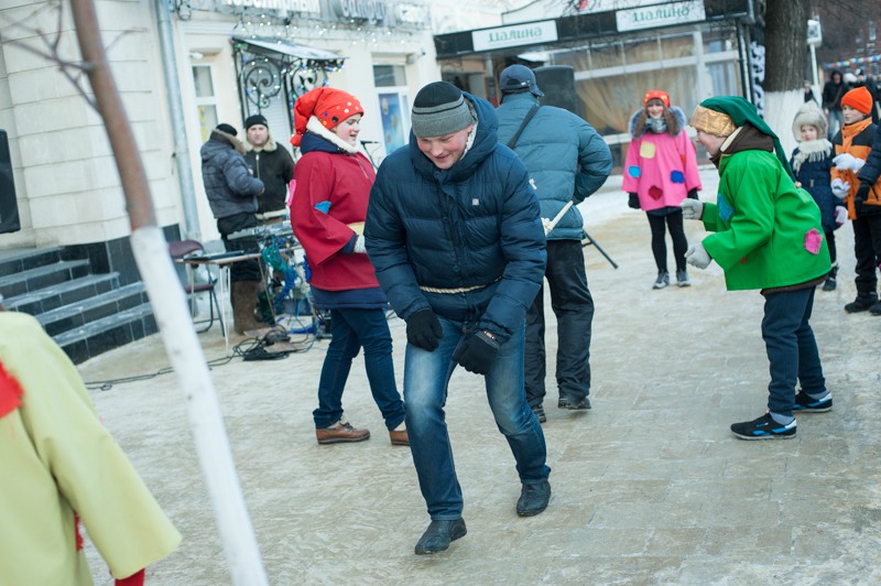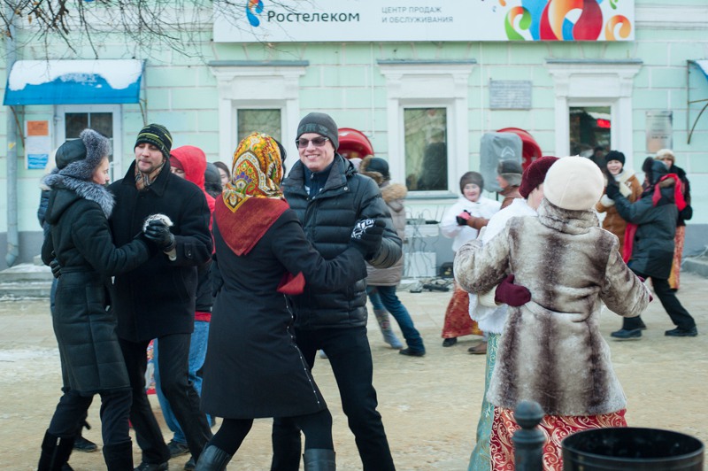 В середине Почтовой обосновались рязанские поклонники исторических танцев из студий «Русский бал» и «Губернский бал» — нарядная компания демонстрировала потрясающую морозостойкость. Впрочем, в Рязани вальсы и кадрили умудряются танцевать вообще в любую погоду: и под дождём, и под палящим солнцем, и когда ртутный столбик термометра уходит в глубокий минус. Против обыкновения зрителей здесь было на порядок меньше, чем участников, да и те тоже быстренько отправлялись учить основные танцевальные па, чтобы хоть как-то взбодриться и не примёрзнуть к модной тротуарной плитке.
