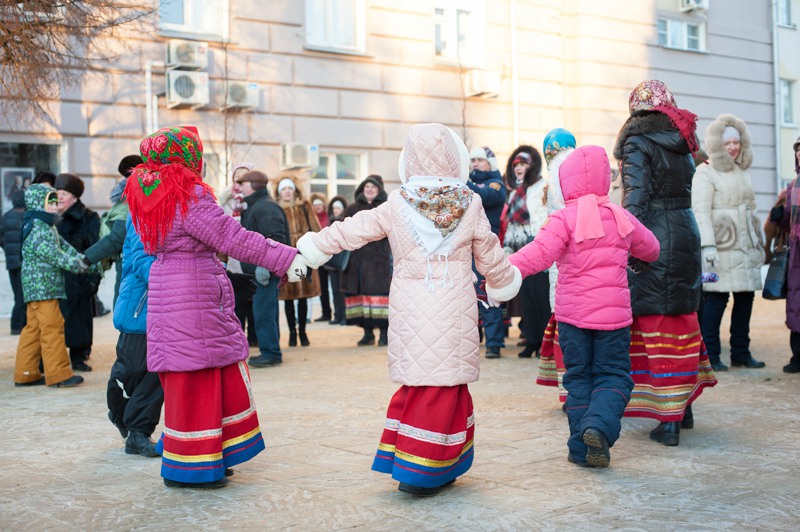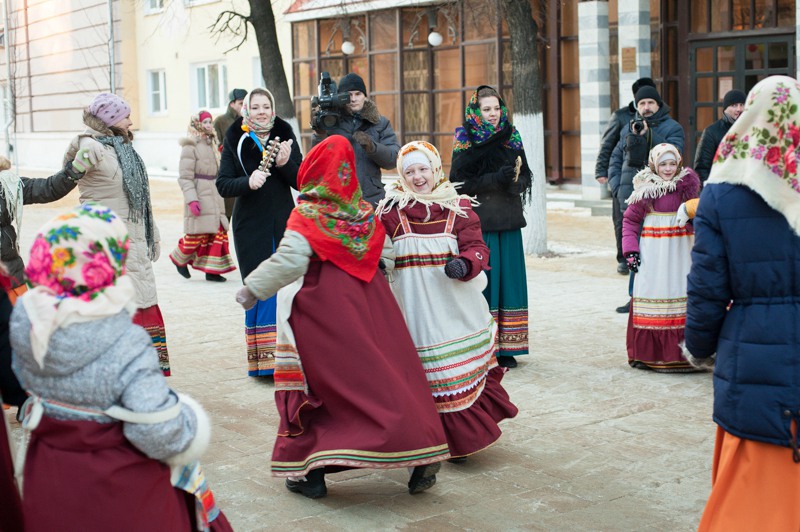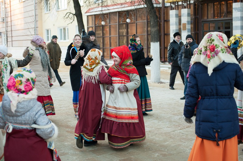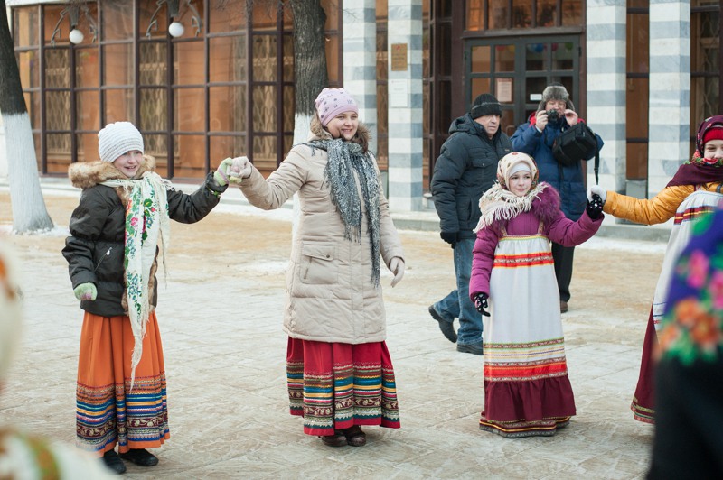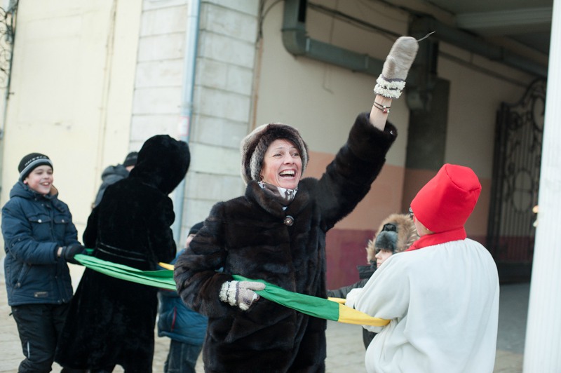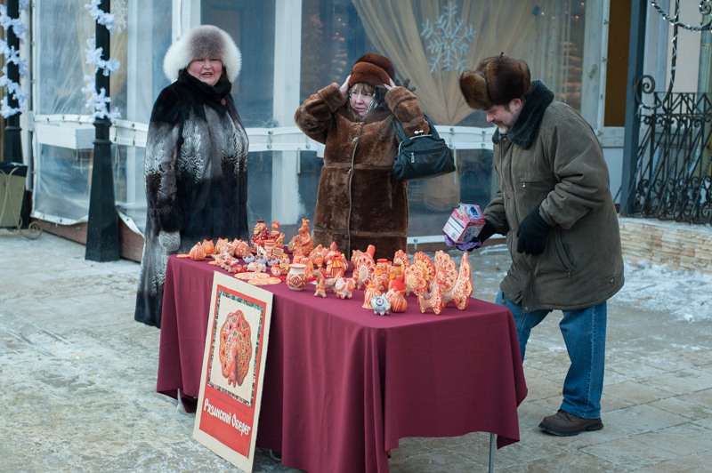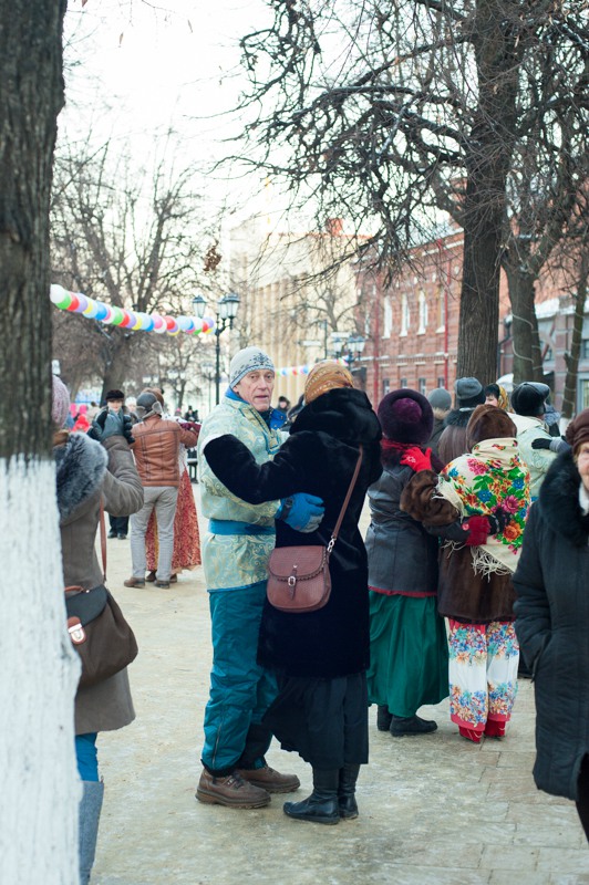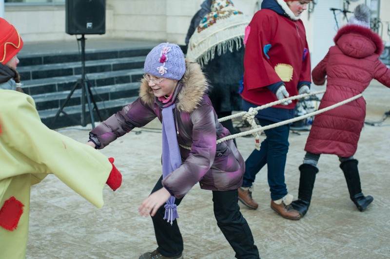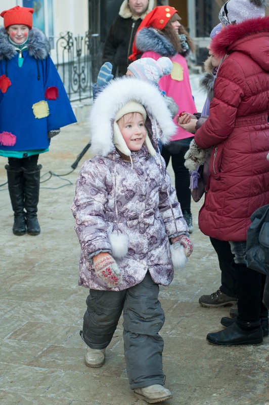 Отдельная площадка была посвящена детским забавам: малышам предлагали шуточное перетягивание каната, подвижные игры на скорость и ловкость. Глядя на раскрасневшуюся малышню, поиграться и покуражиться забредали и взрослые — их числа тех, кому не танцевалось под народные песни и историческую музыку. Обжорные ряды на этот раз предлагали горячий чай и стремительно покрывающиеся инеем пирожки. А с ярмаркой народных промыслов вышло полное фиаско — честь рязанских мастеров защищал один «Рязанский оберег». Может, оно и лучшему — покупательская способность замёрзшей публики была на нуле.