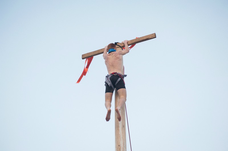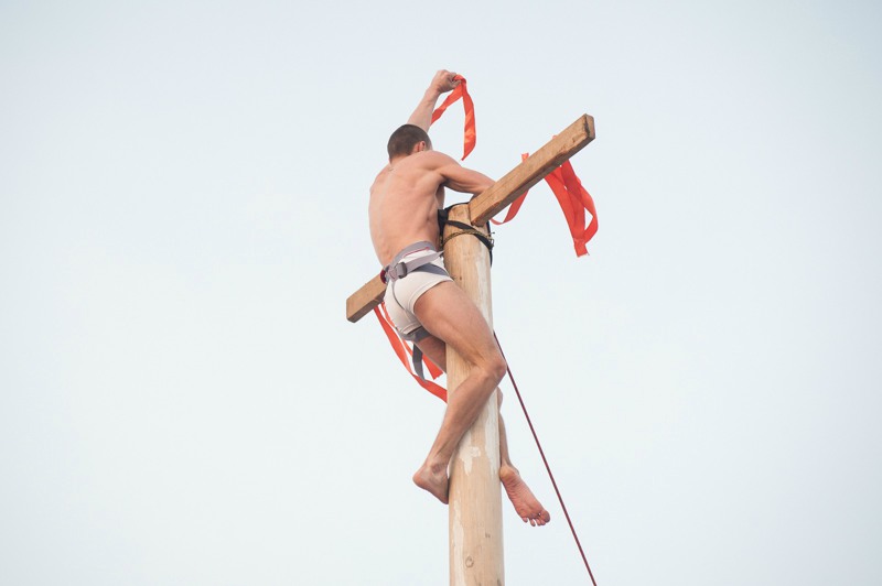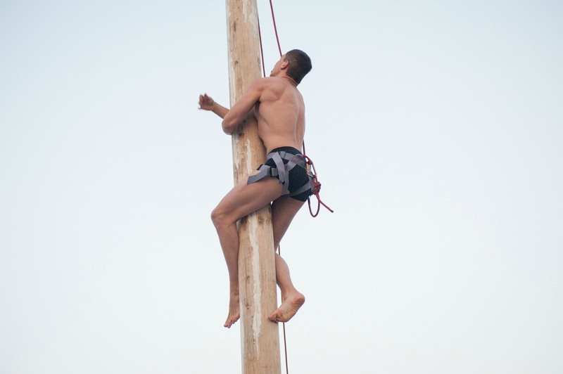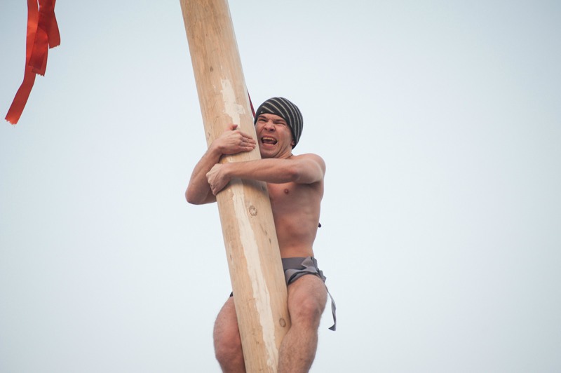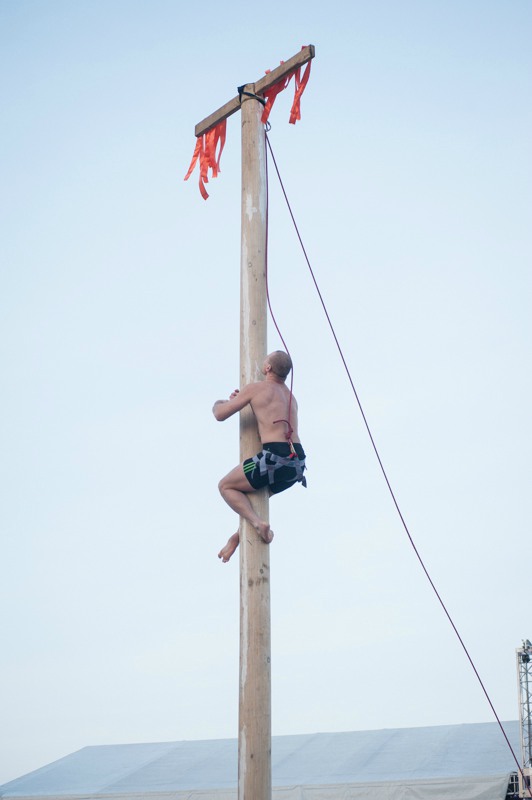 Но какие бы спортивные испытания не готовили гостям организаторы, излюбленным неизменно остаётся «Ярмарочный столб». Самые гарные молодцы приступом и нахрапом берут десятиметровый столб, чтобы добраться до верха, оторвать с макушки вожделенную ленточку и получить законный приз из рук председателя правления Прио-банка. Толпа, а взятие ярмарочного столба собирает неописуемое количество зрителей, болеет за претендентов, как за своих. Большей любовью, конечно же, пользуются юноши помоложе, мускулатурой побольше и ликом краше — покорение столба на радость женской половине публики происходит в нижнем белье. Есть тут и свои любимчики, кое-кто из участников на данном соревновании уже собаку съел и год из года отхватывает стоящие призы: автомойки, аэрогрили, мультиварки.