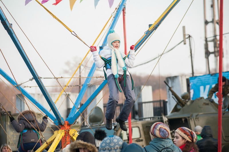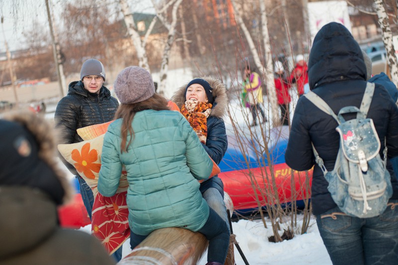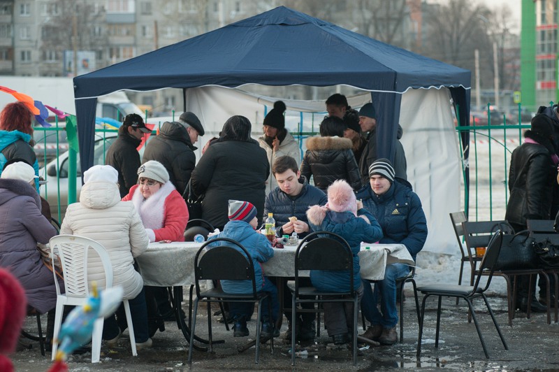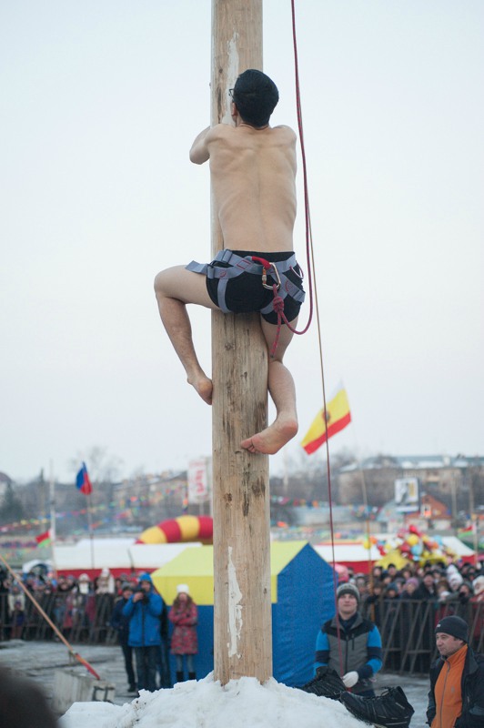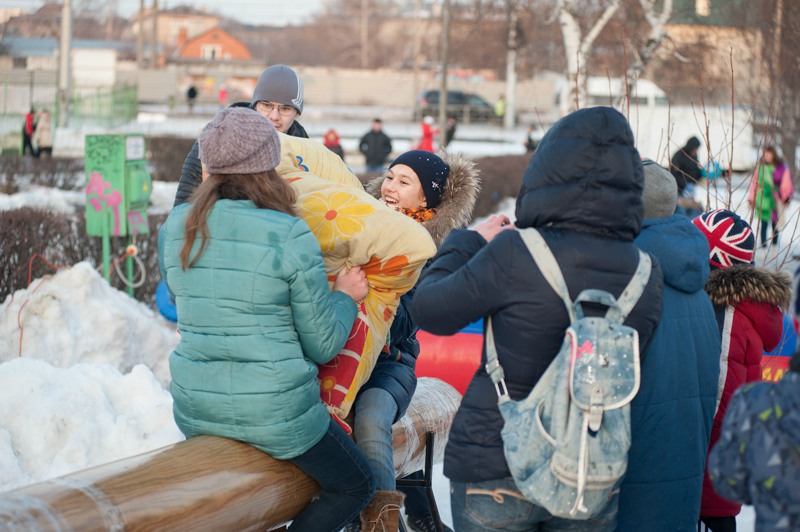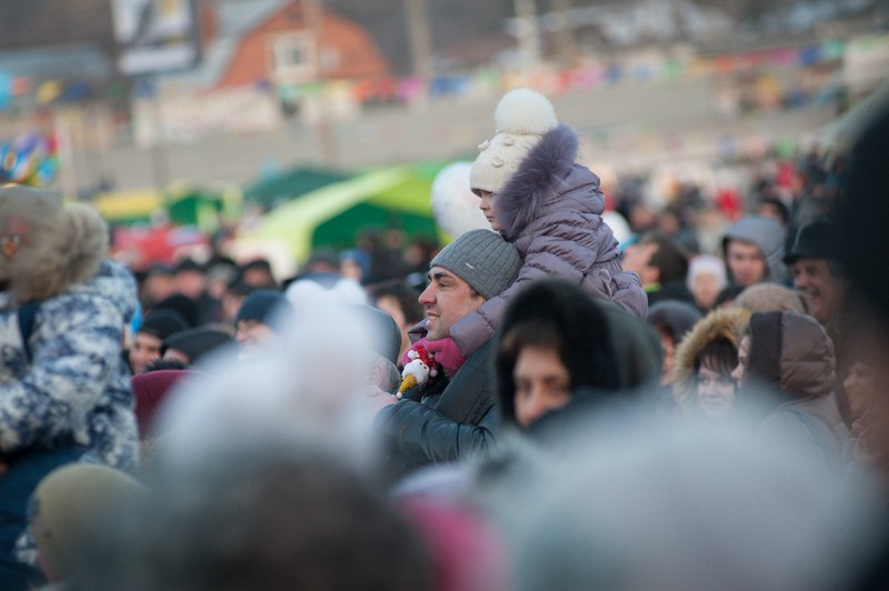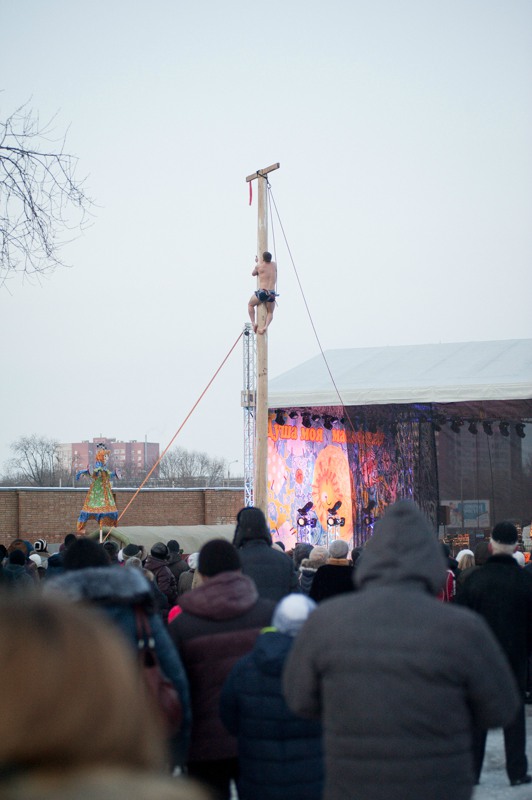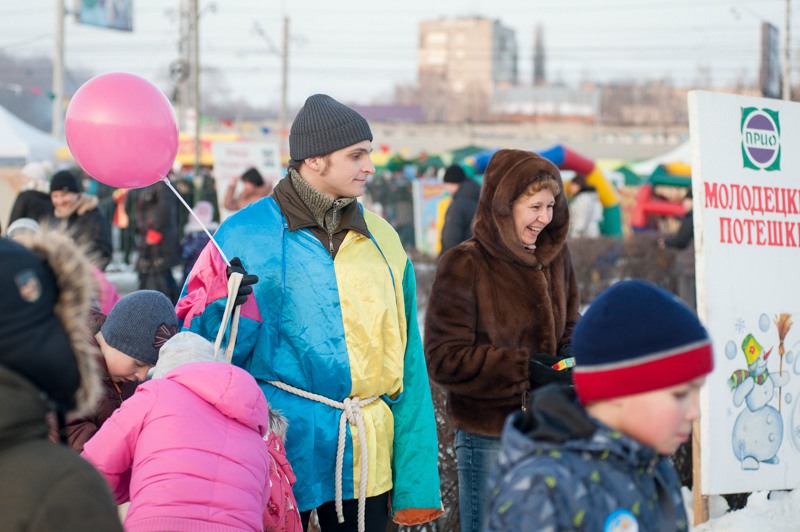 В этом году ежегодные городские гуляния «Душа моя Масленица» прошли в субботу, 21 февраля, на площадке перед Центрально-спортивным комплексом. Огромная территория едва смогла вместить всех желающих — из года в год интерес рязанцев к празднику не только не ослабевает, но, кажется, только увеличивается. На руку оказалась и погода — зима неожиданно дала слабину, и весь день ощутимо припекало солнце, превратившее местные сугробы в глубокие лужи, но ничуть не испортившее настроение присутствующих. Масленица привычно растянулась на целый день.