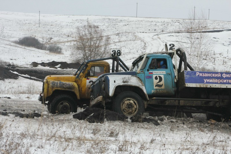 В классе грузовиков ГАЗ-53 на «Русской зиме» прошёл первый этап Кубка России. Здесь собралось девять пилотов. Среди участников отсутствовали признанные лидеры дивизиона арзамасцы Сергей и Александр Кротовы. По информации известного рязанского пилота Валерия Дронова, у спортсменов сейчас большие проблемы по жизни и им не до спорта. Девять пилотов провели два финальных заезда. В первом выстрелил рязанец Максим Кученев, финишировавший первым. Во втором первенствовал «играющий» вице-президент ФАМС опытный Алексей Алёшин. Максим набрал вторую сумму баллов по сумме двух заездов, но вместе с Сергеем Лукьяновым был исключён из соревнований за несоответствие автомобиля техническим требованиям: длина кузова и рамы была короче требуемой.