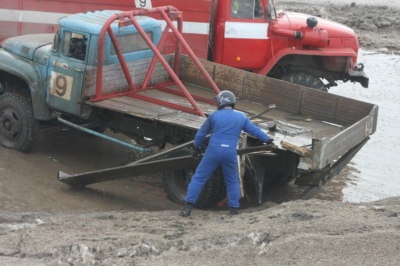 Перед стартами потеплело, и главным препятствием для машин стало большое количество воды на трассе. Многочисленные лужи были «цветочками». «Ягодками» стали два больших «озера» перед подъёмами в дальнем углу дистанции. Первое препятствие (вода + подъём) стало непреодолимым для многих участников баталий, причём не только в легковых классах. Здесь поколотилось немало и грузовиков.
