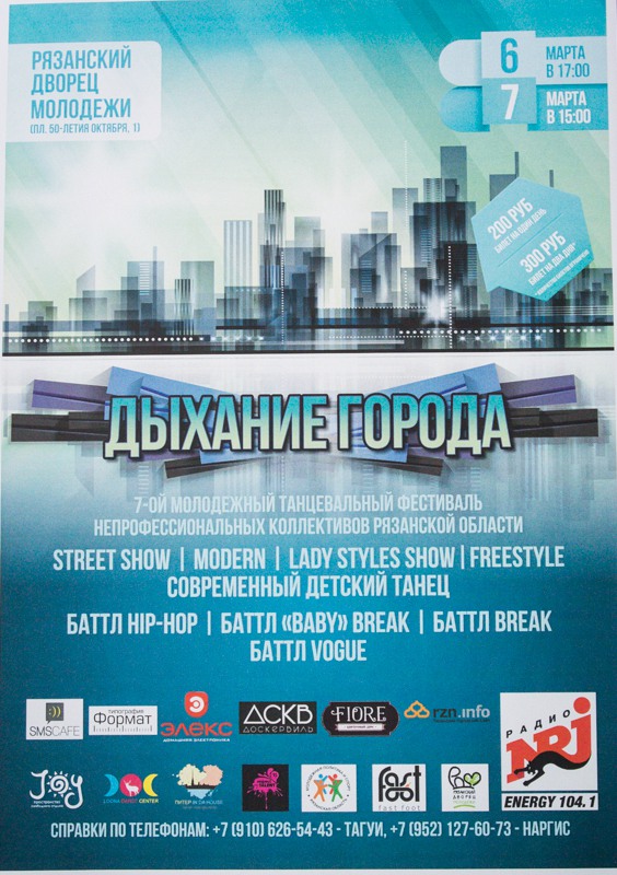 В скором времени Рязань вздохнет в седьмой раз — в городе вновь пройдёт Межрегиональный молодёжный танцевальный фестиваль непрофессиональных коллективов Рязанской области «Дыхание города 2015».