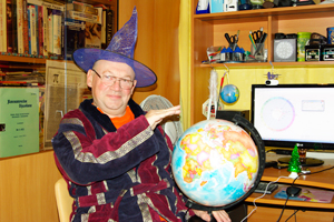 Квартира рязанского астролога — китайский веер на стене, звонкие колокольчики, символы знаков зодиака, хрустальный шар на столе и книги по астрологии — моментально выдает увлечение своего хозяина. Здесь также можно увидеть атрибуты, которые часто используются для фотосессий: шляпу звездочета, подзорную трубу и глобус. Сделав несколько снимков, мы сели за стол и начали беседу.