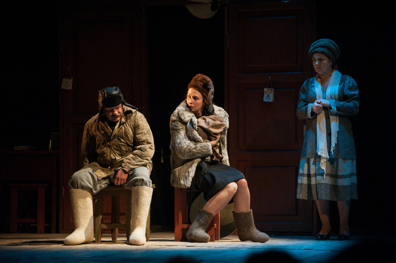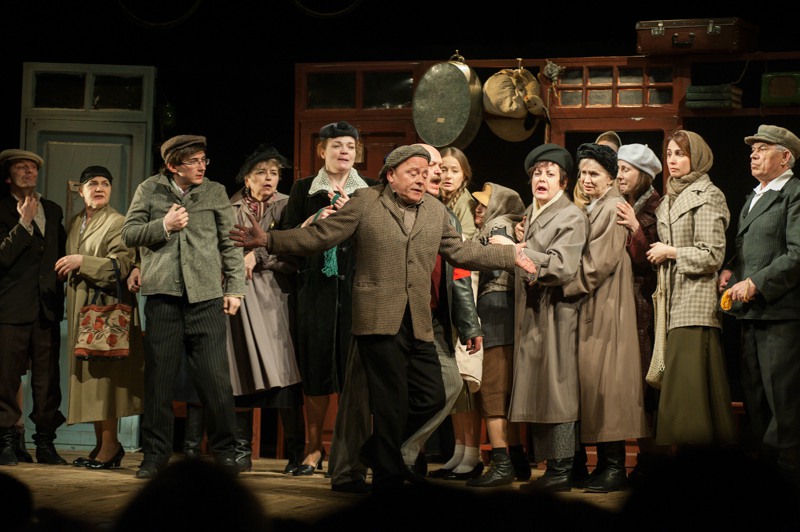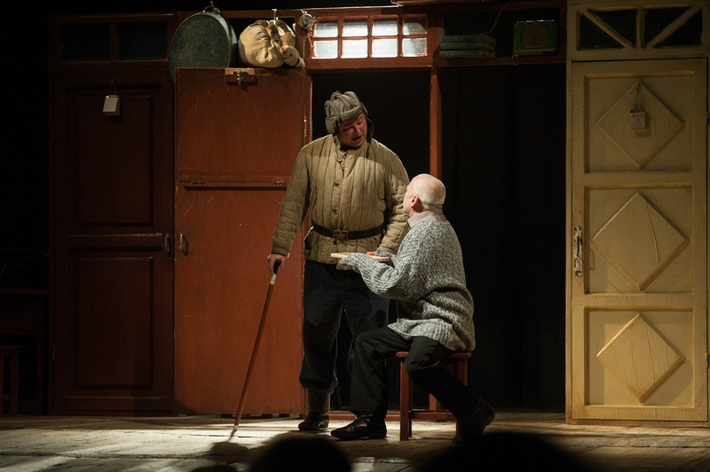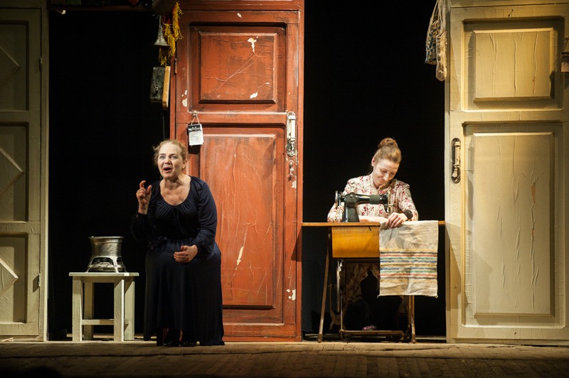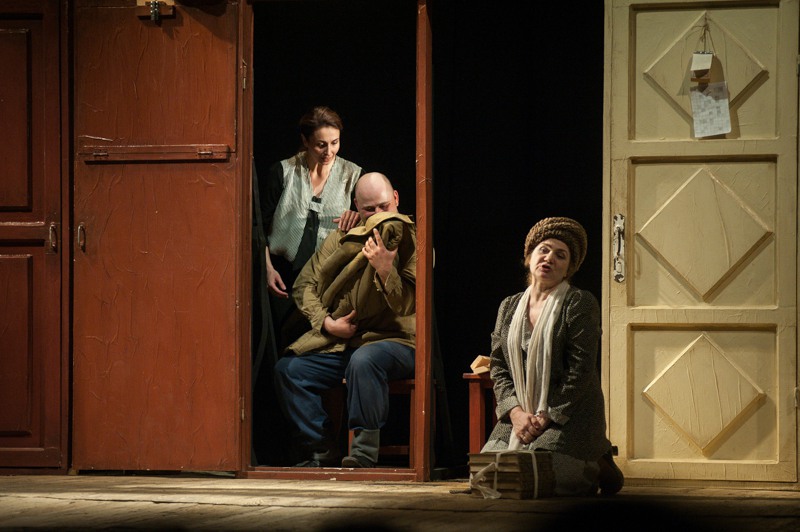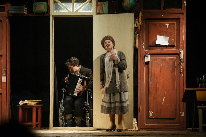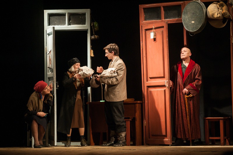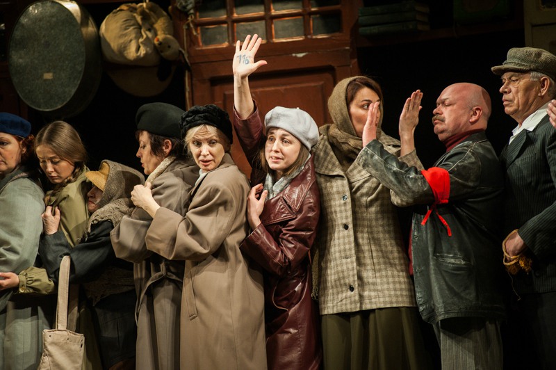 Режиссёр не только сохранила многоголосие и невероятную веру в неотвратимое чудо, но и обогатила сухие книжные страницы зримым, ёмким сценографическим воплощением. Предметный мир спектакля перекочевал на сцену из тех самых коммуналок и бараков: старая швейная машинка, зелёная настольная лампа, ржавая подкова, фотография деда, облупленные двери длинных коридоров, заставленные чемоданами антресоли, пожелтевших глобус, отрывные календари, колченогие табуретки, треники с вытянутыми коленками, красные галстуки, керосиновые лампы, мятый бумажный рубль, детские варежки на резинках… Здесь немые свидетели прошлого получают своё право голоса посреди ностальгического хора людских голосов.
