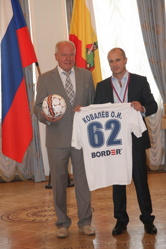 — Ваш успех стал примером для мальчишек и молодёжи, которые придут вам на смену. Приятно, что клуб не живёт сам по себе, а занимается воспитательной работой с подрастающим поколением, — отметил Сергей Алексеевич, после чего вместе со спортивным директором Профессиональной футбольной лиги России Михаилом Ильиным (он вручал серебряные медали первенства) вручил награды игрокам, тренерам и административным сотрудникам «Рязани».