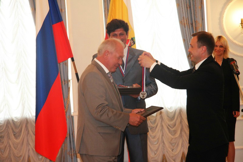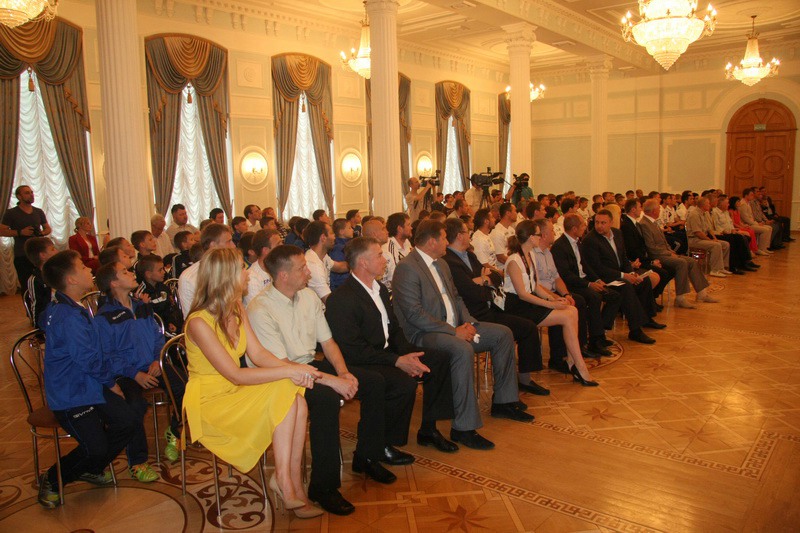 Самохин отметил, что сейчас в регионе строится много различных спортивных сооружений, и награды ФК «Рязань» свидетельство правильно выбранной стратегии развития физической культуры и спорта в области.