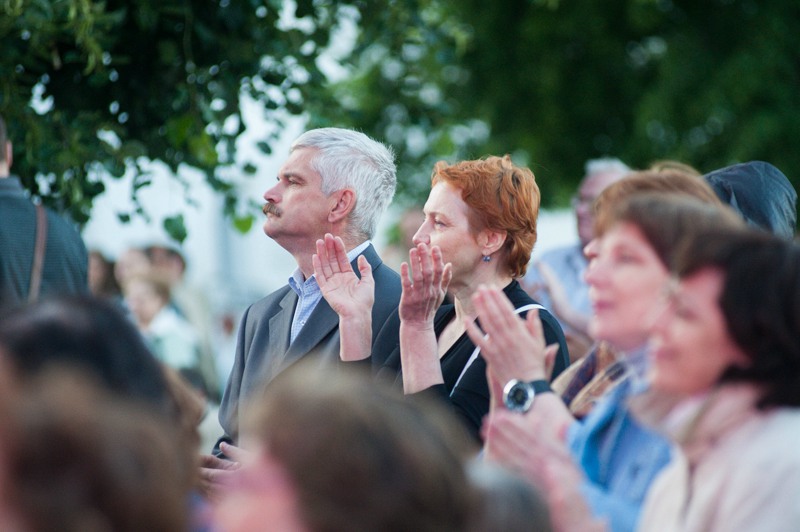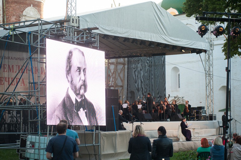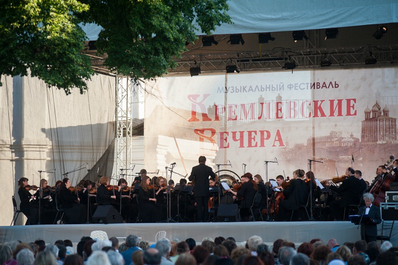 Последним мероприятием в рамках нынешних «Кремлёвских вечеров» стал концерт популярной классической музыки «Сила слова, сила музыки», приуроченный к празднованию Дня России. 12 июня во Дворе Олега Рязанского кремля собралось множество зрителей самых разных возрастов и родов занятий от местного духовенства до педагогов и от представителей неформальной молодёжной культуры до городской интеллигенции. Концерт носил довольно официальный характер в полном соответствии с настроением государственного праздника. Музыкальная программа включила в себя выступление Рязанского губернаторского оркестра, исполнившего знаменитые произведения Арама Хачатуряна, Дмитрия Шостаковича, Альфреда Шнитке, Сергея Рахманинова и других. В коллекцию шедевров классической музыки органично вписались произведения Эдуарда Артемьева. В прошлом году специально к визиту ведущего современного композитора Рязанский симфонический оркестр отыграл концерт из его произведений для отечественного кинематографа, а также его электронных композиций. Необычный проект получил высокую оценку самого Артемьева и заслужил овации зала Рязанской филармонии. На этот раз слушателями программы стала уже более широкая аудитория жителей города. Вместе с экскурсом в мир отечественной музыкальной классики рязанцам была предложена прогулка по страницам произведений ключевых авторов русской литературы. Народный артист России, артист Рязанского театра драмы Сергей Леонтьев и ведущий артист театра на Соборной Сергей Невидин прочитали стихи Александра Пушкина, Михаила Лермонтова, Бориса Пастернака, отрывки из произведений Ивана Тургенева, Льва Толстого, Николая Гоголя и других великих русских писателей. Видеорядом для мелодекламации прослужили кадры из кинопостановок отечественной классики.