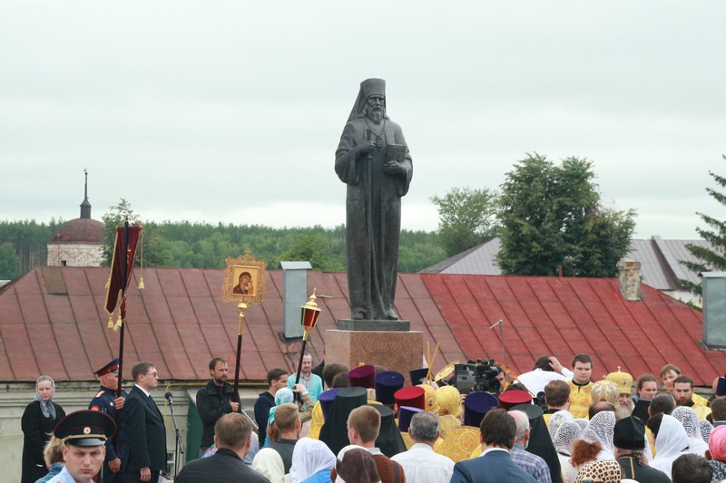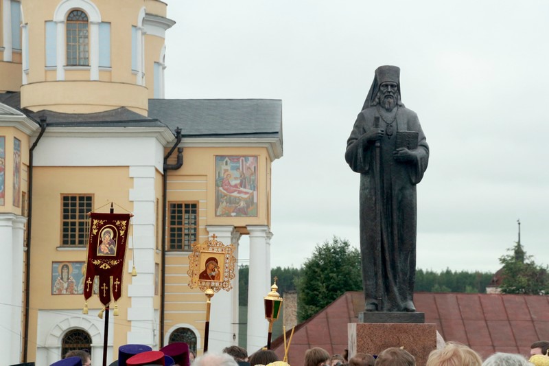 К торжественному богослужению и открытию памятника 29 июня работы полностью завершить не удалось, но заметно изменилась территория перед стенами монастыря. Вид обрели пешеходные дорожки и парковка, вскоре здесь должны появиться зелёные участки с клумбами и деревцами. По завершении праздничной литургии, открыв памятник святителю Феофану, собравшиеся служители церкви говорили о проделанной работе и награждали достойных медалями за возрождение монастыря.