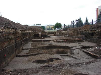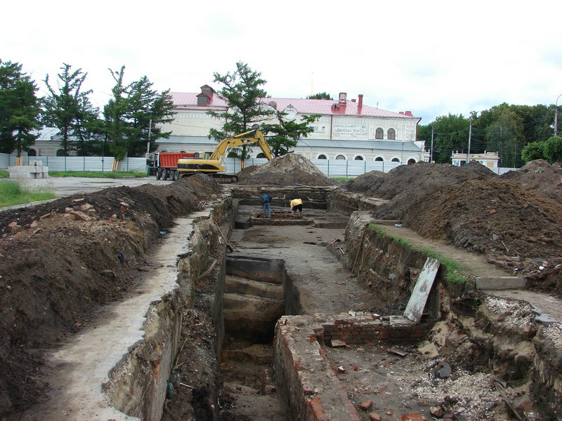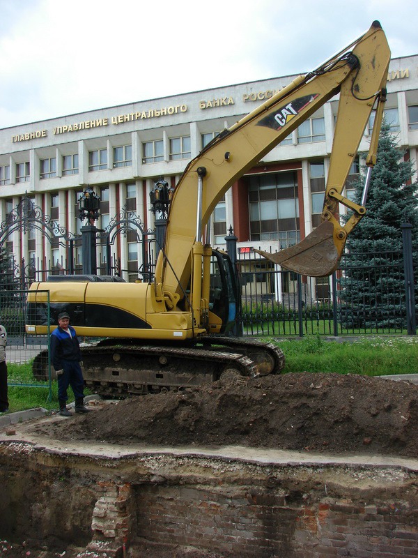 На Соборной улице, перед Главным управлением Центробанка России, заканчиваются археологические раскопки. Уже на следующей неделе учёные покинут раскопы, и техника начнёт рыть котлован для строительства нового здания.