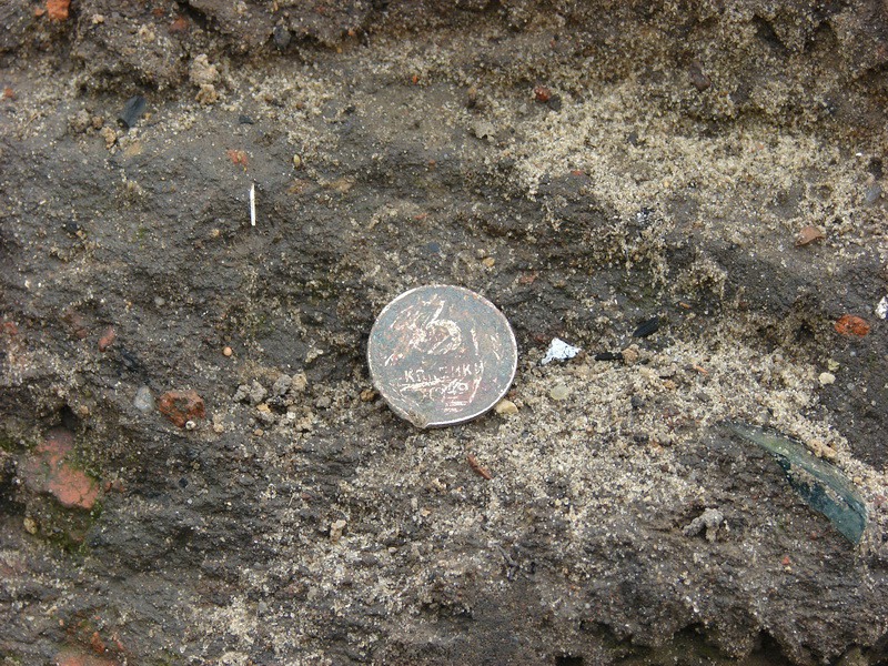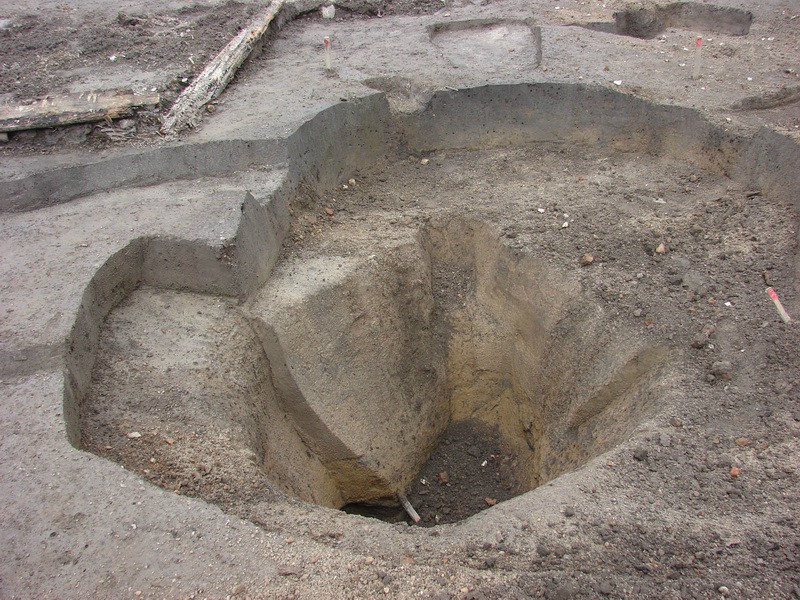 Культурный слой на месте раскопок оказался сильно перемешанным. Кроме того, здесь залегают сухие слои земли, в которых практически не сохраняется дерево — от бревна в 20 сантиметров остаётся лишь тончайшая полоска тлена толщиной в несколько миллиметров. Поэтому от стен средневековых жилищ почти ничего не осталось. Зато археологи обнаружили достаточно большое количество погребов как XIII-XIV веков, так и XVII веков. В одном из погребов XIII-XIV веков были найдены остатки мастерской, а точнее остатки тиглей — следы бронзолитейного производства. Это позволяет предположить, что местное население занималось не только сельским хозяйством, но и более сложной ремесленной деятельностью.