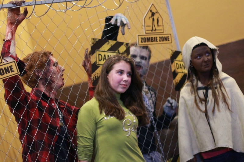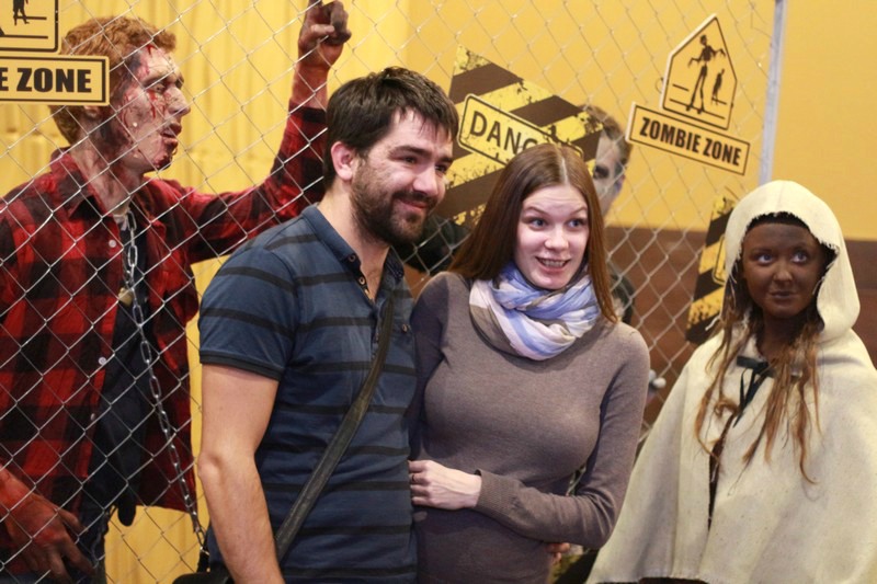 Много вопросов вызвал образ и манера ведущего, но даже это не смогло испортить общий эмоциональный фон мероприятия. Две фотозоны, предложенные организаторами, ни минуты не оставались без внимания гостей. Аниматоры, загримированные под зомби, так и притягивали к себе, чтобы сделать групповое фото на память. Любой желающий мог здесь сам превратиться в зомби. За час работы аквагримёры не присели ни разу — поток желающих иссяк только, когда начался кинопоказ. Тем более что за грим в качестве приятного бонуса можно было получить тематический капкейк. Конкурсов на площадке было предостаточно — и викторина, на которой разыграли четыре футболки с принтом «Ходячие мертвецы» от FOX, и конкурс селфи с такими же призами.