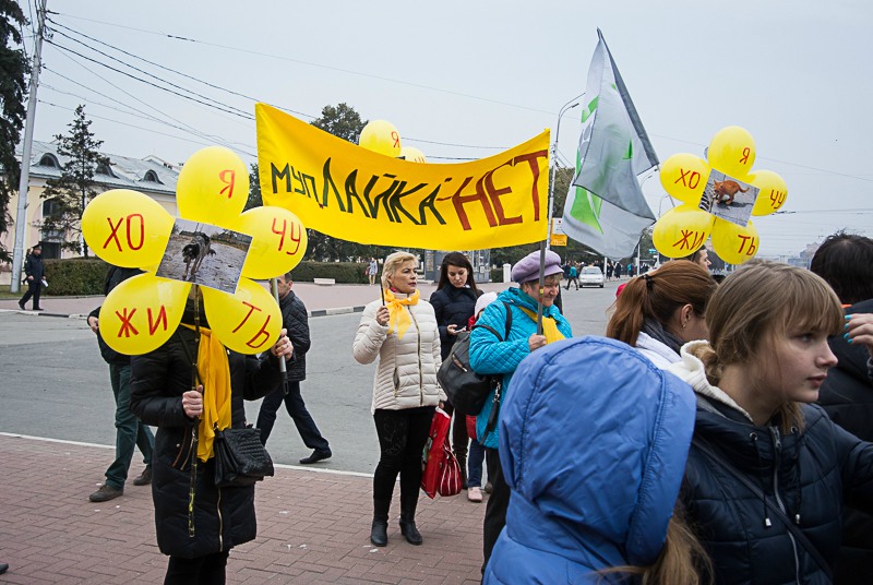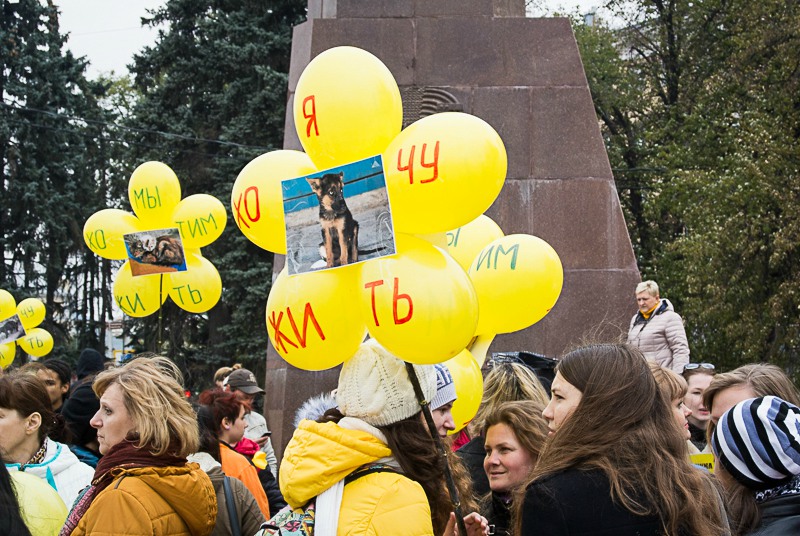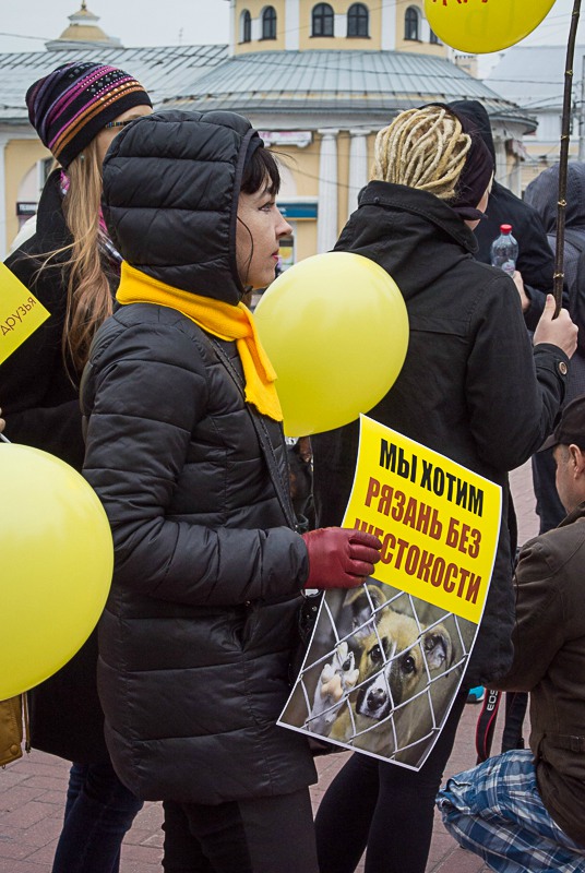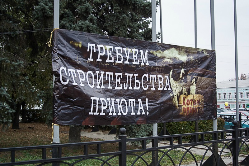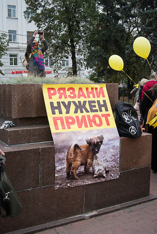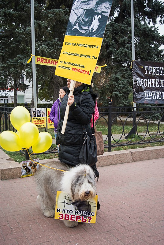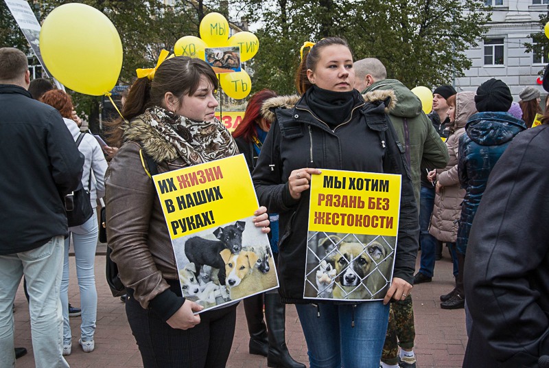 Рязанцы вышли на площадь Ленина с требованиями открыть в городе приют для бездомных животных и применять лишь гуманные методы контроля численности бродячих собак и кошек.