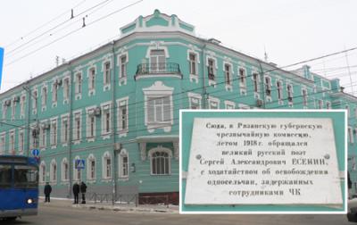 Третья доска находится на здании Управления ФСБ России по Рязанской области (Ленина, д. 46). До революции здесь располагалась гостиница Реерта, а в первые послереволюционные годы — Рязгубчека. С этим объектом недвижимости связана удивительная история. По словам Ольги Вороновой, она характеризует Есенина как народного заступника и по-настоящему смелого человека.