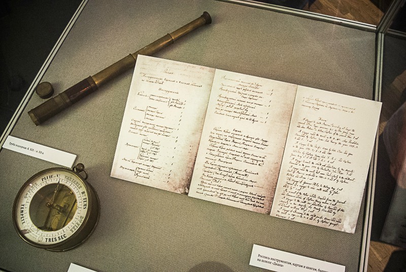 Во второй кругосветной экспедиции на шлюпе «Камчатка» Головнина сопровождал художник Михаил Тиханов, оставивший зарисовки быта путешественников, портреты жителей разных стран и пейзажи, через которые проходил корабль экспедиции. На выставке представлены гравюры с этих рисунков. Кроме того, в выставочном зале можно посмотреть документальный фильм о путешественнике, среди прочих исторических документов зрители увидят оригинальные рисунки, сделанные в ходе экспедиции.