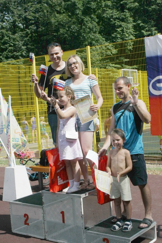 В соревнованиях Дня спорта могли принять участие и семейные команды, для которых была оборудована полоса препятствий. Семейные старты прошли в двух возрастных группах. Победителями стали семьи Грушиных (возраст ребёнка до 6 лет) и Исаковых (возраст ребёнка 7-9 лет). Самые юные участники Дня спорта соревновались в прыжках на батуте. Им давались задания выполнить какие-либо упражнения, которые ребятня с удовольствием делала. Лучших наградили.