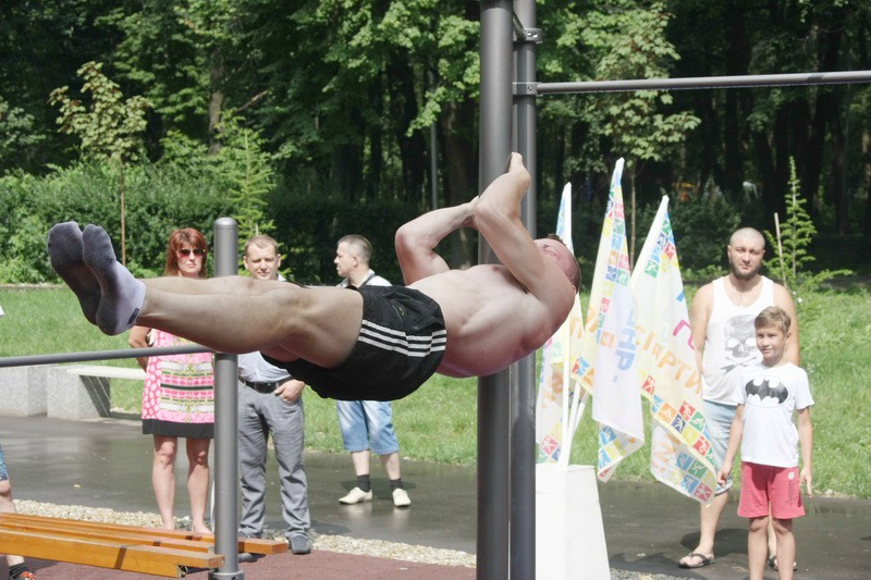 Уличные тренажёры, которые размещены на специальной площадке рядом с теннисными кортами, не только опробовали все желающие, но и получили профессиональную консультацию из уст тренеров-преподавателей и спортсменов-инструкторов СДЮСШОР «Юпитер». Впрочем, консультанты с удовольствием размялись на этих снарядах и сами.