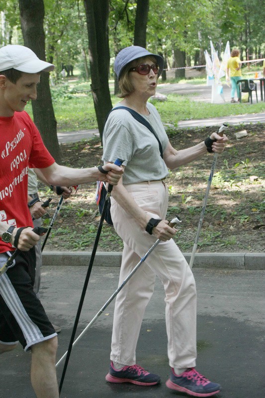 Ещё одно мероприятие Дня спорта вышло за пределы спортивного ядра ЦПКиО: по маршрутам терренкура, проложенным в парке ещё в 2014 году, прошлась группа любителей скандинавской ходьбы. Компанию бывалым пенсионерам составили юные рязанские лыжники.