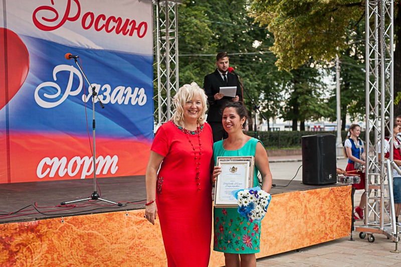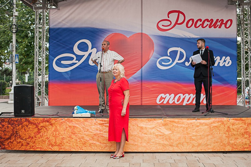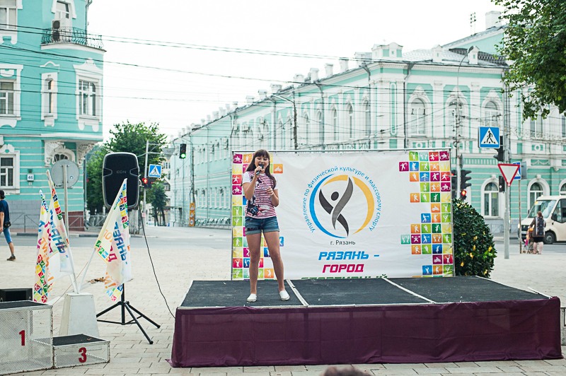 Праздник начался с торжественного шествия по Почтовой, в котором приняли участие лучшие тренеры и спортсмены нашего города, а также ростовые куклы в костюмах символов Олимпиады различных лет: белый и бурый медведи и бразильские антропоморфы Винисиус и Том. На главной сцене прошло чествование рязанских героев спорта. Ведущий рассказал зрителям об уроженцах нашего города, достигших наибольших успехов в российском и мировом спорте. Виновников праздника поздравили заместитель главы администрации Рязани Лариса Крохалёва и начальник муниципального управления по физической культуре и массовому спорту Марина Кащеева. Также слова поддержки прозвучали в адрес российской сборной на Олимпиаде в Рио-де-Жанейро. Торжественная часть продолжилась фестивалем спортивной и туристической песни, а также выступлениями творческих и спортивных коллективов города.