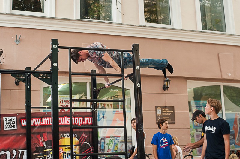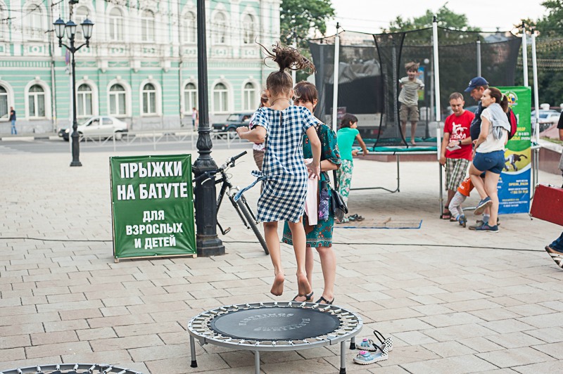 На всём протяжении улицы Почтовой расположились десятки площадок, посвящённых самым разным видам спорта. Настольный теннис, футбольный фристайл, армспорт, гиревой спорт, гантели, воркаут, аэробика на батуте, шахматы и шашки, самбо, велотриал и многое-многое другое. Впервые в истории праздника рязанцам была продемонстрирована площадка мини-гольфа. Кроме того, все желающие могли проверить собственную спортивную подготовку, сдав нормы комплекса ГТО или приняв участие в соревнованиях «Папа, мама, я — спортивная семья».