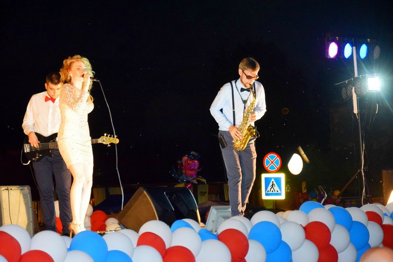 Вечером торжество продолжилось на площади Ленина, где собравшихся ожидала шоу-программа с участием артистов районного Дома культуры, рязанских групп «Экс-МиК» и «Мохито».