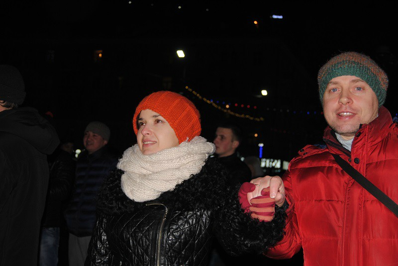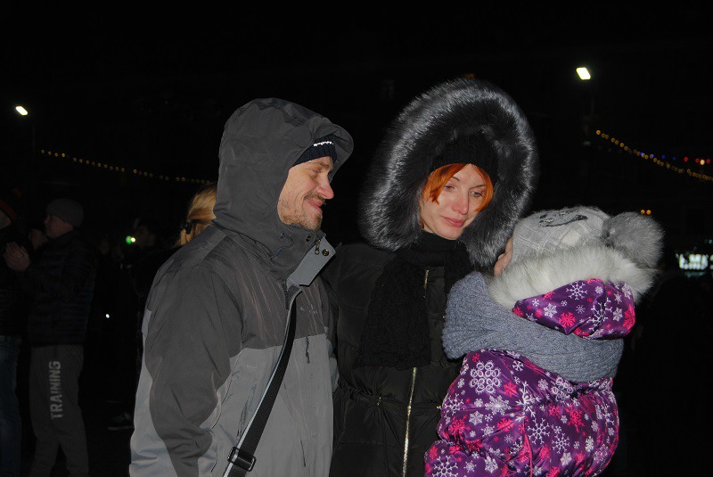 Многие традиционно приезжают на площадь Победы к двум ночи — из-за стола и специально на салют. Непосредственно перед грандиозным новогодним фейерверком рязанцев поздравил губернатор Олег Ковалёв (с экрана) и глава муниципального образования Владислав Фролов (со сцены). Завершилось действо продолжительным громким салютом и массовым хороводом вокруг главной ели Рязани.