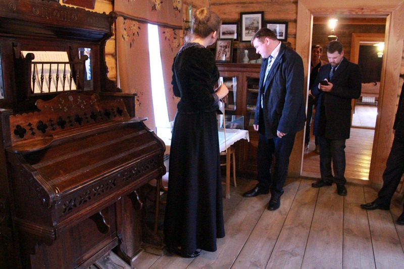 В земской школе Любимов не отказался поупражняться в каллиграфии и оставил запись в прописи перьевой ручкой, после чего получил приглашение в День знаний провести урок в земской школе для местных ребятишек. Он пообещал, что постарается, предположив, что этим уроком может стать история. Но экскурсоводы заверили, что в нынешнее время гаджетов популярнее остальных урок русского языка. На что глава региона выразил желание рассказать об этимологии интересных слов, а также познакомить с земской школой своих дочерей. Экскурсия завершилась в усадьбе Кашиной, где Любимов оставил запись в Книге почётных гостей. «Прекрасное место, полное красоты и русского духа. Очень быстро влюбляешься в здешнюю природу и ландшафт, настоящие российские избы, дома и храмы», — написал он, пожелав всем любви, радости и добра.