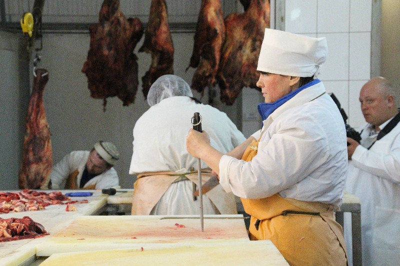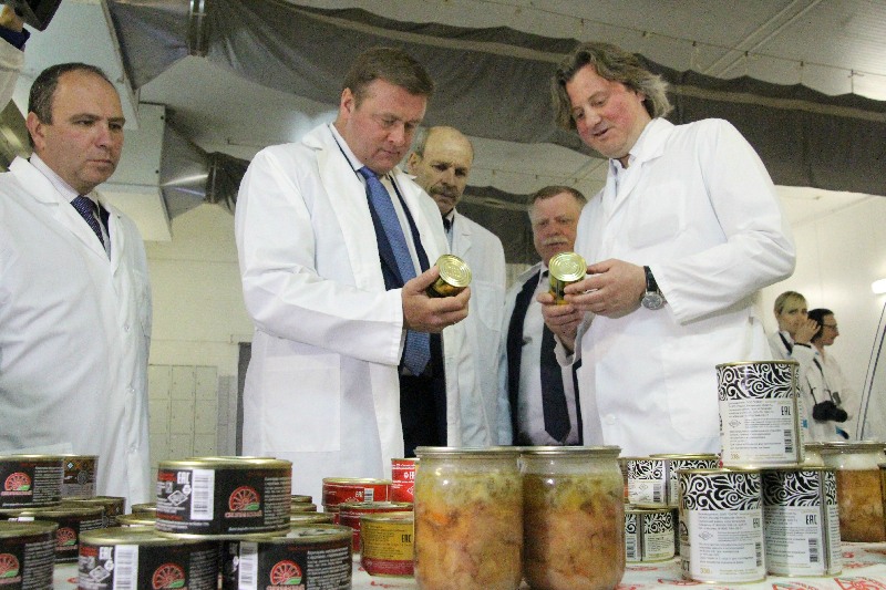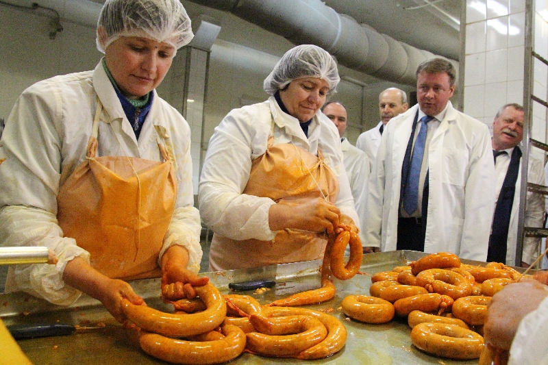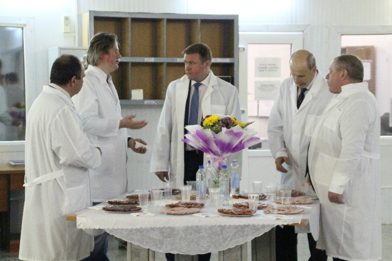 Вторым пунктом, который был также назван качественным и перспективным, стал Скопинский мясоперерабатывающий комбинат. Экскурсию по производству провёл его директор Денис Рубцов. Гостям были показаны почти все стадии переработки мяса — разделку, жиловку и фаршесоставление, термообработку, обвалку, фасовку, а затем уже они смогли угоститься мясной нарезкой на дегустации. Врио губернатора был приятно удивлён разнообразием и успел предложить переназвать окорочок «Вяземский» в «Рязанский». Николай Любимов также пообещал помочь заводу войти в сети.