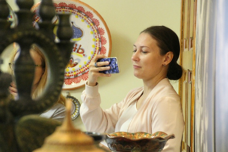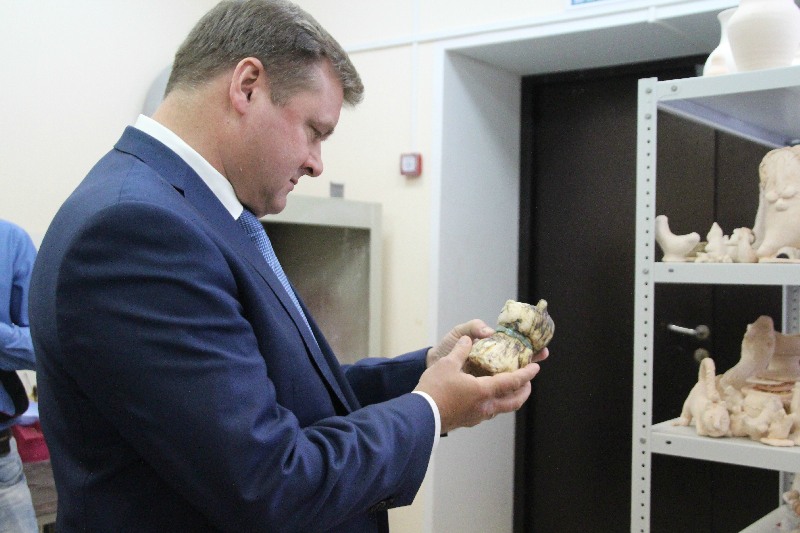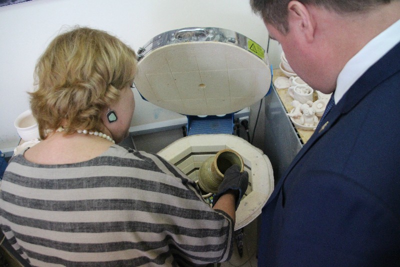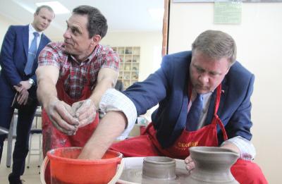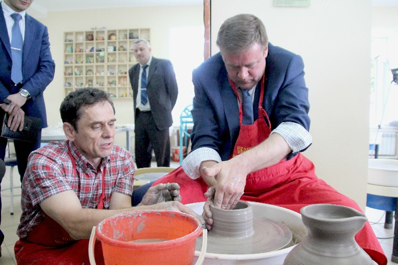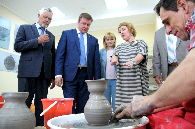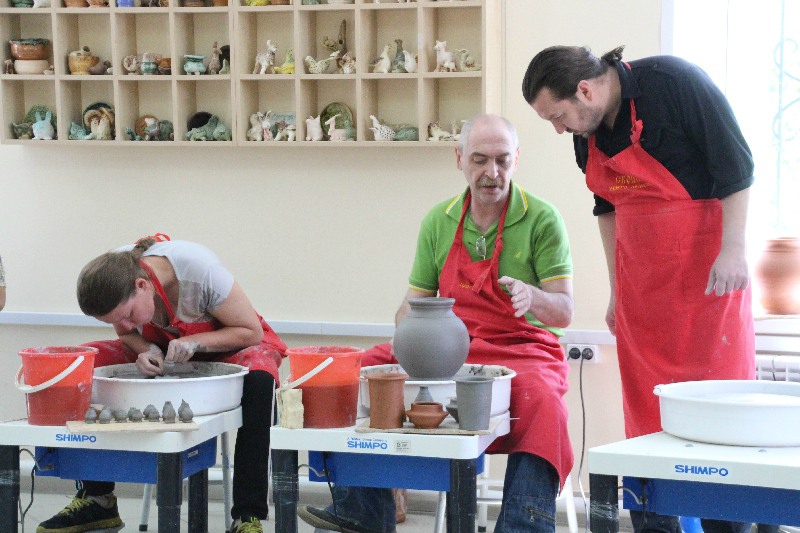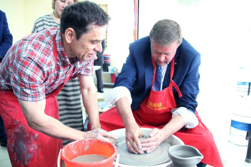 Фестиваль гончаров в Скопине, который проходит с 2002 года, собирает единомышленников со всего мира, а сам музей был ими назван столицей российского гончарства. Заглянули и в музей, экспозиция которого — это авторские изделия участников фестивалей. Не обошли вниманием и сам процесс — увидели печи, гончарную мастерскую, где гости сперва вдумчиво наблюдали за руками мастера, лепившего кувшин, а затем и Николай Любимов поспешил занять его место. После признался, что получил огромное удовольствие, тем более, что впервые сел за гончарный круг.