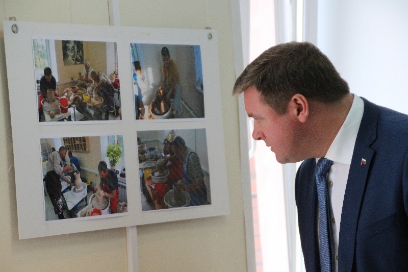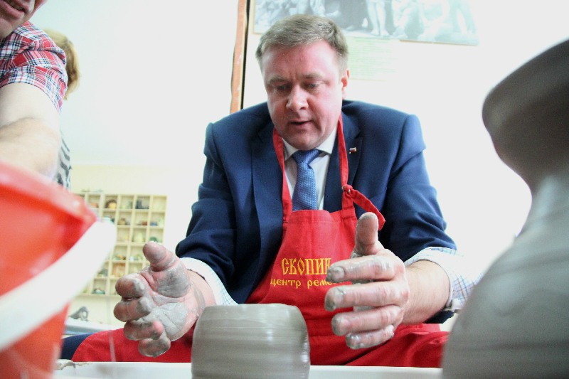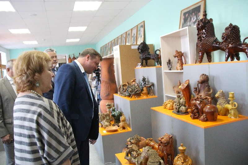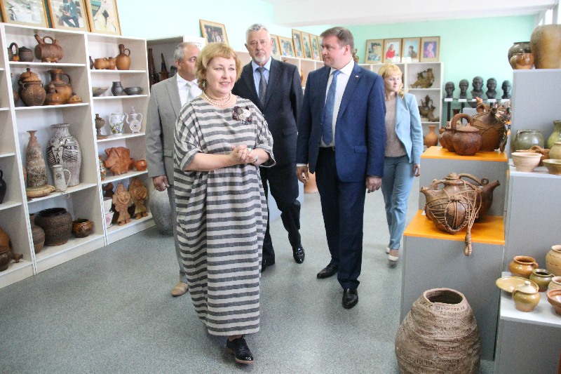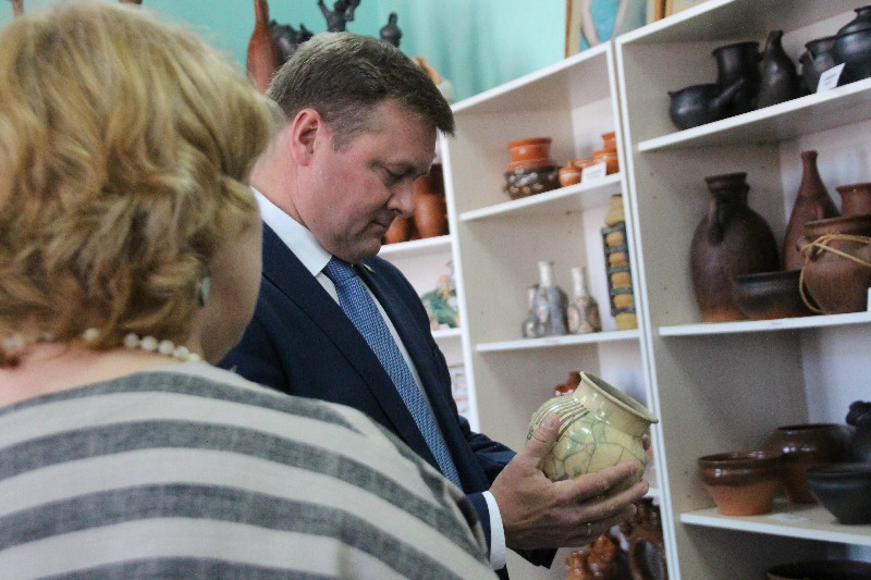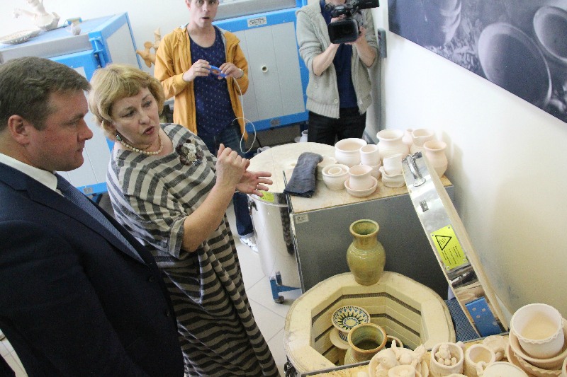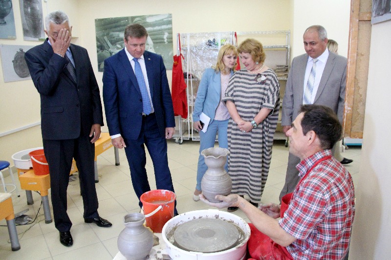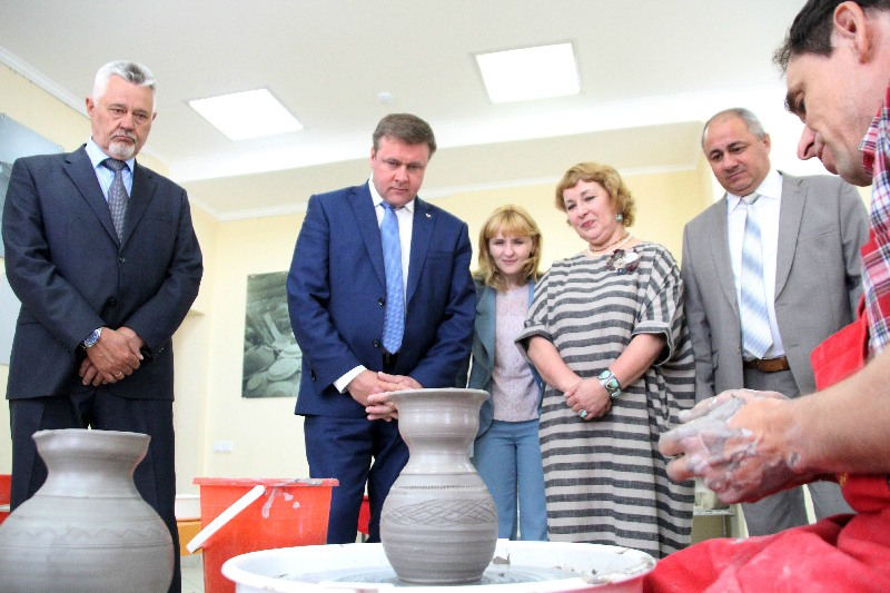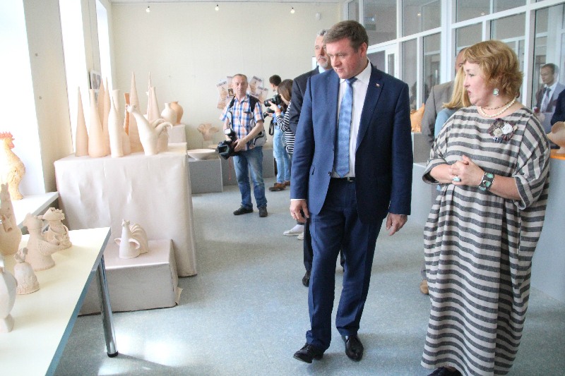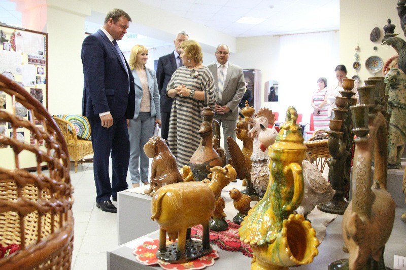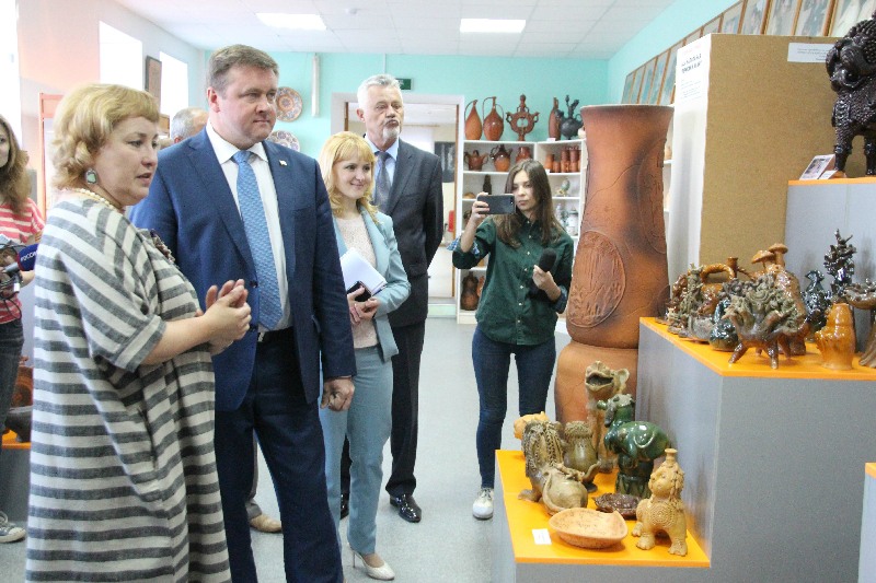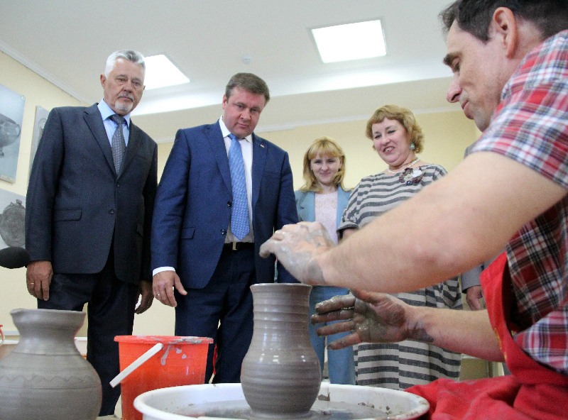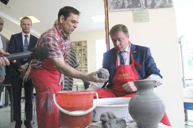 Впечатления от Скопина у Николая Любимова стали ещё ярче после визита в Центр народных художественных промыслов и ремёсел, где его встретила директор, Народный художник Российской Федерации Татьяна Лощинина. Она рассказала, что центр создан не по культурно-туристической, а по линии экономического развития, и полностью работает на самоокупаемость. Центр — площадка для творческих проектов предпринимателей, художников и мастеров в сфере народного творчества. Лощинина показала парадную экспозицию с михайловским коклюшечным кружевом, кадомским венизом, шиловской лозой, за которой, по её заверению, приезжают москвичи со словами, что «ротанг вообще себя не оправдал». Рассказала, что сама скопинская керамика берёт своё начало от скопинского художественного промысла, который уже в 1900 году приобрёл славу на Парижской промышленной выставке. Получил он в те времена и своё название — фантазийные фигуры, каждая из которых и сегодня лепится на гончарной основе. А в центре имеется для этого 22 гончарных круга.