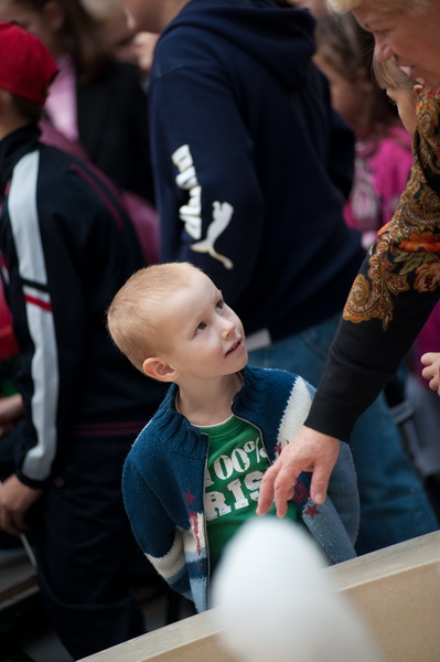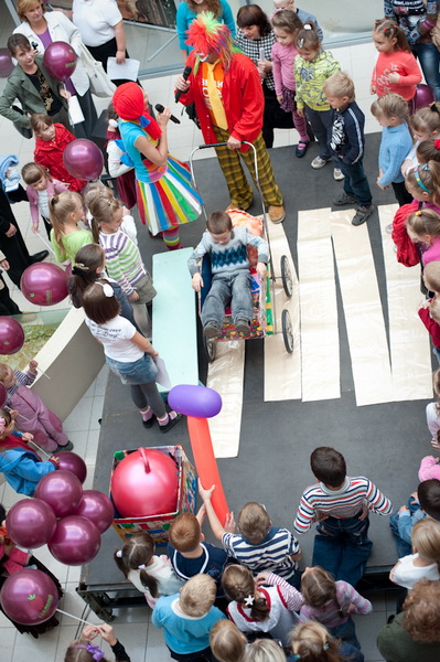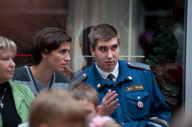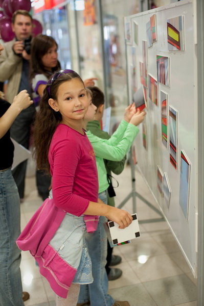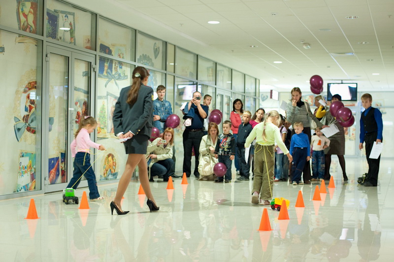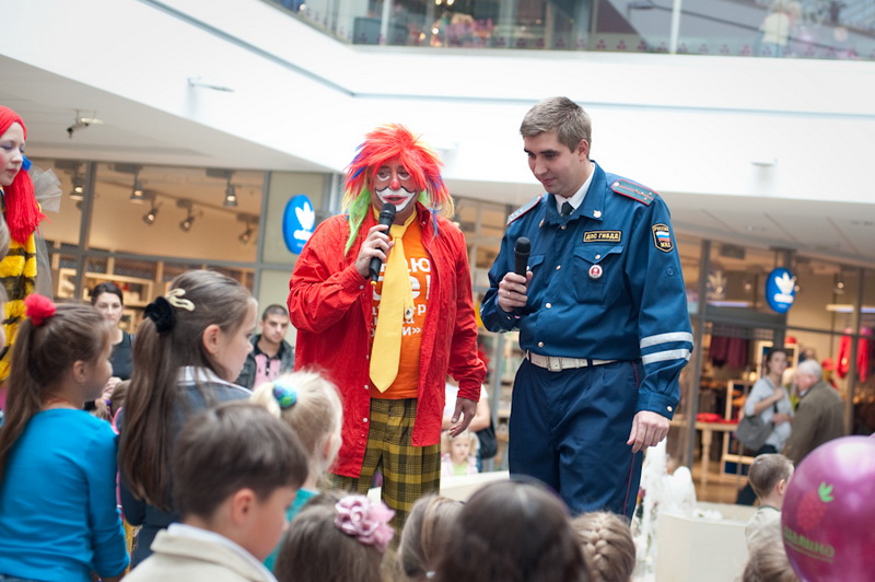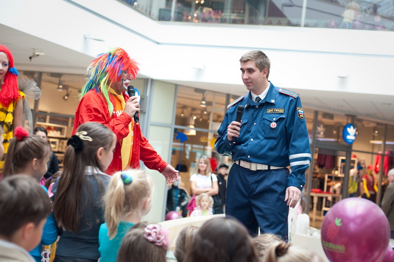Под конец соревнований ребята собирали паззлы, изучая при этом разнообразные транспортные средства. За выполненные задания ребята получали цветные отметки в стиле ГИБДД — зелёный цвет обозначал «Отлично», жёлтый — «Хорошо», а красный никто из ребят так и не получил— все участники прошли испытания достойно. После окончания соревнований, малышей посвятили в грамотные пешеходы. Сотрудник ГИБДД вручал каждому участнику «Удостоверение юного пешехода» с настоящей печатью и подписью инспектора, а также памятный честно заслуженный подарок. Пока самые маленькие бегали по станциям и отгадывали загадки, ребята постарше и их родители собрались у главной сцены, где госавтоинспектор отвечал на наболевшие вопросы: с какого возраста ребёнок может ездить на первом сидении автомобиля или самостоятельно водить скутер, а также когда ребёнку можно поступать в автошколу с целью получения прав. Артисты театра помогли сделать серьёзную лекцию о правилах дорожного движения лёгкой и понятной даже маленьким слушателям. Завершился праздник на площадке перед торговым центром, где дети катались на самокатах и электромобилях и рисовали на асфальте разноцветными мелками автомобили будущего.