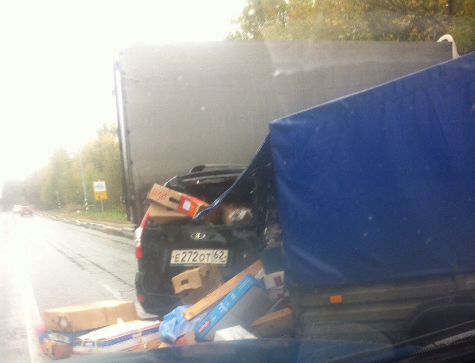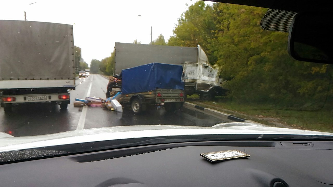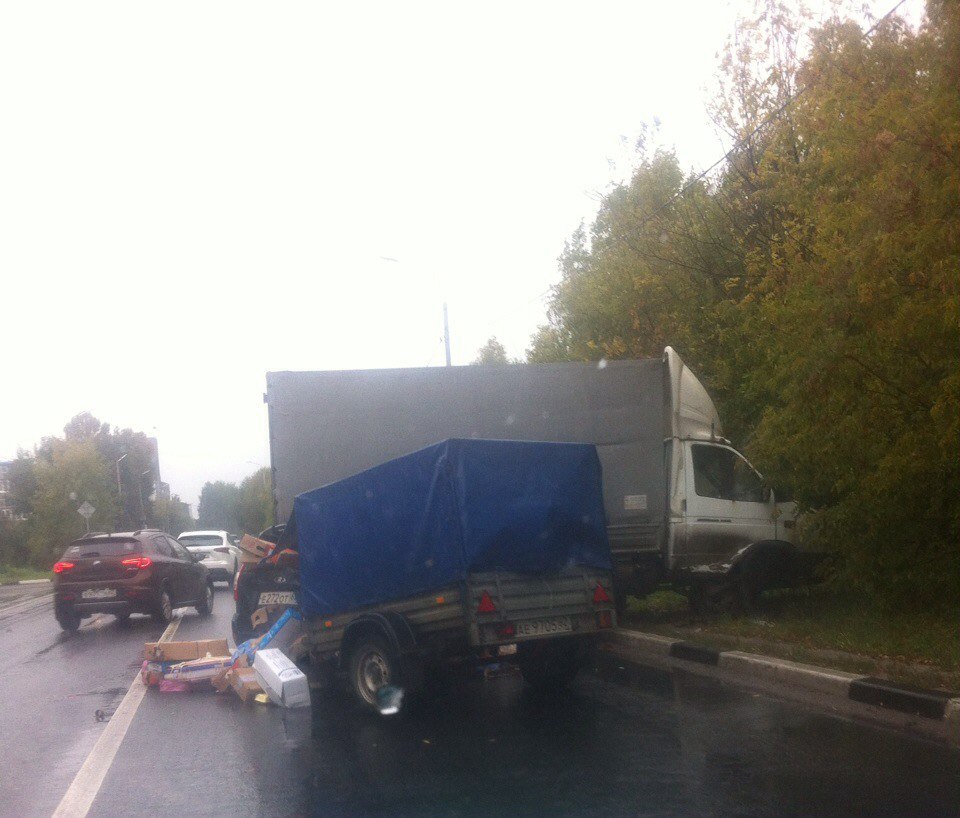 На Михайловском шоссе в Рязани столкнулись грузовая «Газель» и Lada с прицепом.