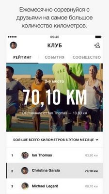 Приложения для бега есть почти у всех крупных производителей спортивной одежды и обуви. В этот список попадает Nike, так как им удалось сделать не просто приложение для индивидуальных тренировок, пусть и с выходом в соцсети, а организовать большое и активное сообщество. Его участники бросают друг другу вызовы, участвуют в виртуальных и оффлайн тренировках, вершина которых — 10-километровый забег в Москве We run Moscow. Так что это приложение для тех, кто хочет не просто тренироваться, а «вступить в клуб». Есть, правда, у него пара недостатков. Первый — долгая и подробная процедура регистрации, которая порядком раздражает. (С другой стороны, пройти её вам предстоит всего один раз). Второй — странная система сбора ряда данных: чтобы не вдаваться в технические детали, отметим только, что для точной работы смартфон придется держать в руке.