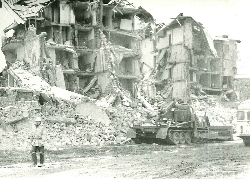 Однажды, в первый день, мне повезло. Наша группа обследовала развалины мукомольного комбината, который из девятиэтажного сложился в трёхзтажный, как слоеный пирог, только из плит. Я услышал стоны женщины. На эти звуки мы проделали отверстие-лаз в одном из слоёв, и я, лёжа между плитами, стал откапывать пострадавшую. Добрался. Женщина была жива, хоть и пролежала под завалом больше суток. Завязал ей глаза платком, подал сигнал ребятам — и мы подняли её на свет божий, отправили в госпиталь. Больше таких везений не было. На городском стадионе стояли ряды чёрных гробов, туда доставляли мертвых.