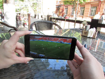 Результат оказался крайне оптимистичным. Сначала мы заглянули в кафе «Cream Soda», где за чашечкой чая понаблюдали за эфиром спортивного канала. Картинка чёткая и яркая, полное ощущение, что смотришь обычный телевизор, только на маленьком экране. Потом мы отправились в пешую прогулку по Лыбедскому бульвару и Почтовой, периодически замеряя скорость мобильного интернета при помощи приложения Speedtest. Интернет удалось разогнать до 120 Мбит/с — впечатляющий результат, который в полной мере позволит насладиться просмотром потокового видео, будь то трансляция матча с участием отечественной команды или новая серия любимого сериала.