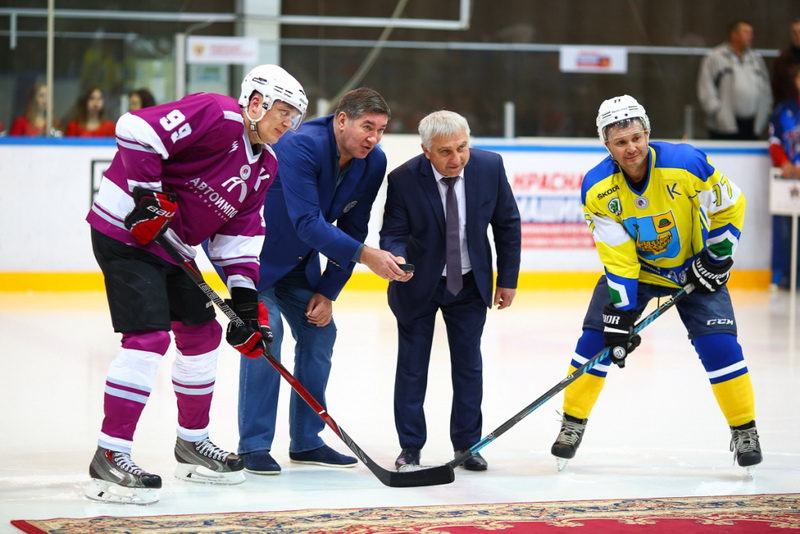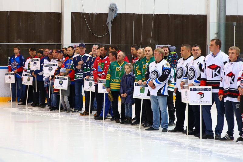 На церемонии торжественного открытия хоккеистов и зрителей тепло приветствовали Сергей Икрянников, Игорь Бахмутов, Александр Кожевников и Олег Смирнов.