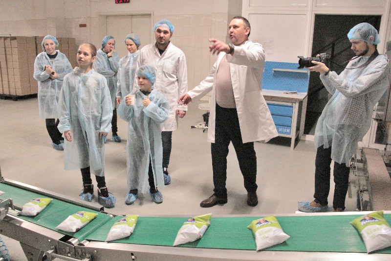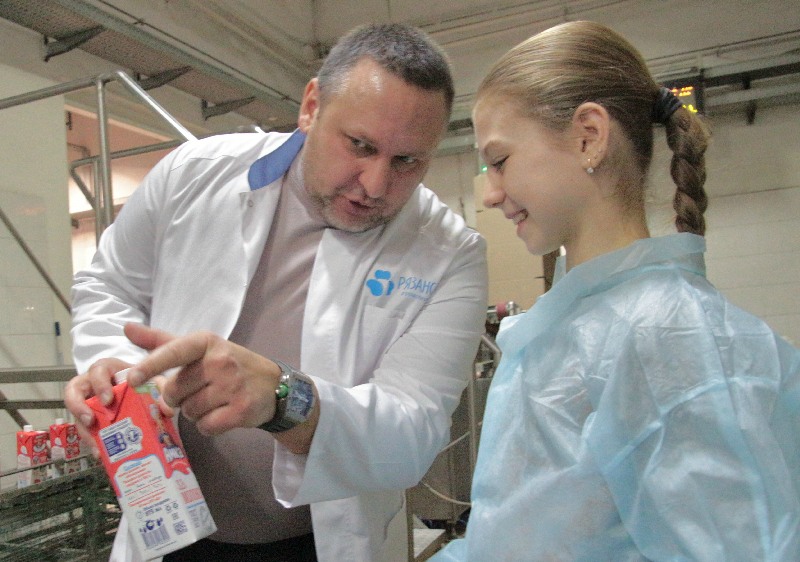Генеральный директор предприятия, депутат Рязанской областной Думы Станислав Подоль лично провел для Саши экскурсию по заводу. Руководитель комбината рассказал и наглядно показал юной чемпионке весь процесс производства молочной продукции. Чемпионка своими глазами увидела процесс появления молока на заводе, как его проверяют в лаборатории, разливают и фасуют молочные продукты в разнообразные пакеты и брикеты. В ходе экскурсии гостья успела попробовать местное молоко, йогурт и ряженку.