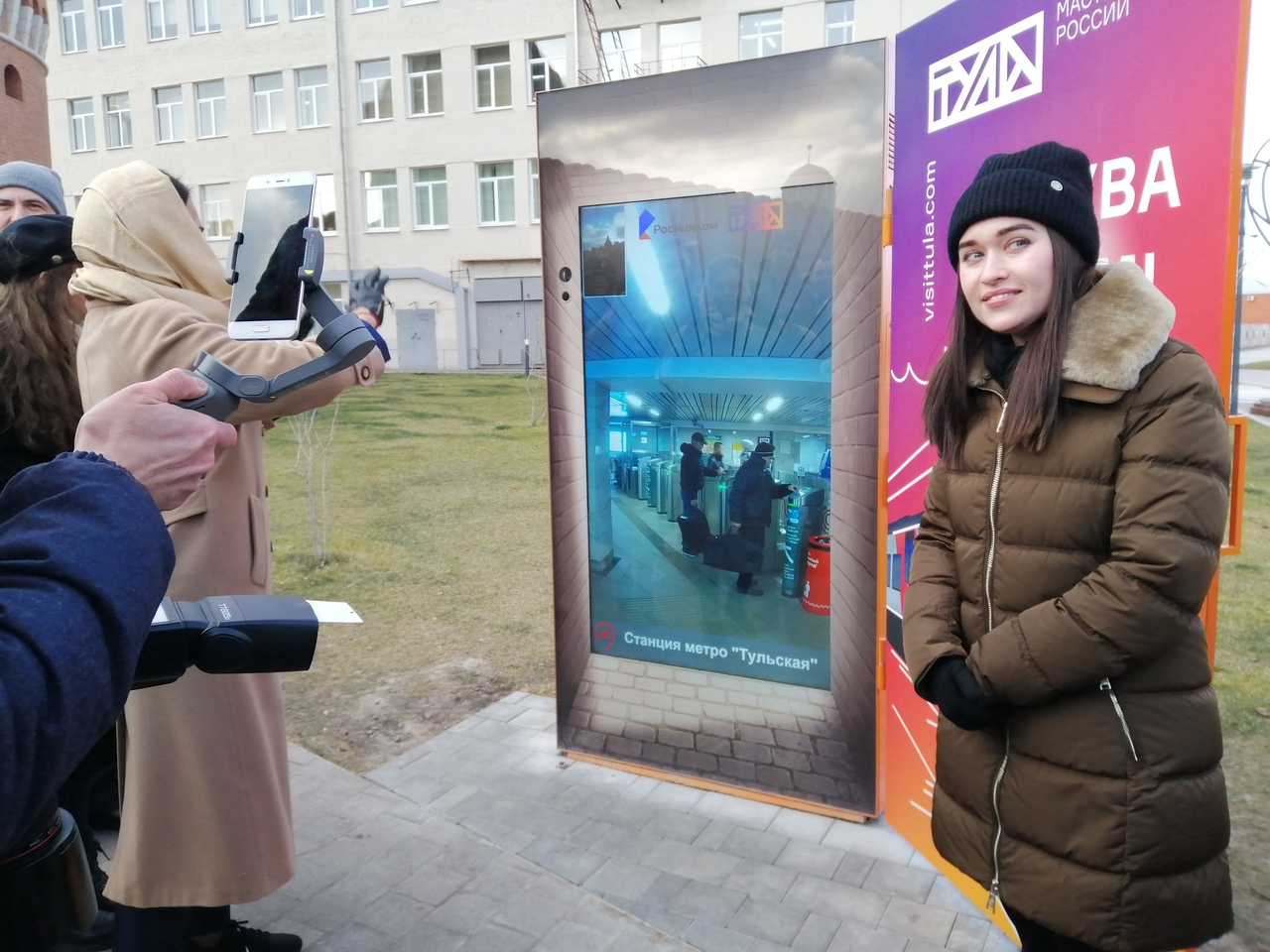 Вторая панель, также на базе сервиса «Ростелеком экраны», открывает «окно» в столицу нашей Родины. «Онлайн-дверь» устанавливает прямую видеосвязь между набережной Тулы и станцией метро «Тульская» в Москве. Москвичи имеют возможность ещё и лицезреть ролики об оружейной столице, также выводящиеся на экран удалённо.