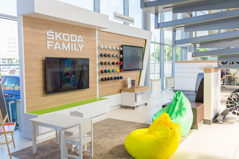 Для самых маленьких клиентов в шоуруме появилась яркая детская зона ŠKODA Family с игрушками и машинками. А ТВ-панель с любимыми мультфильмами сможет надолго увлечь детей, пока их родители заняты таким важным делом, как покупка нового автомобиля.