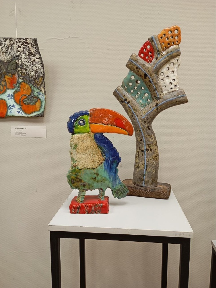 Керамические фигуры мастера отличаются фантазийностью, декоративностью и условностью форм.