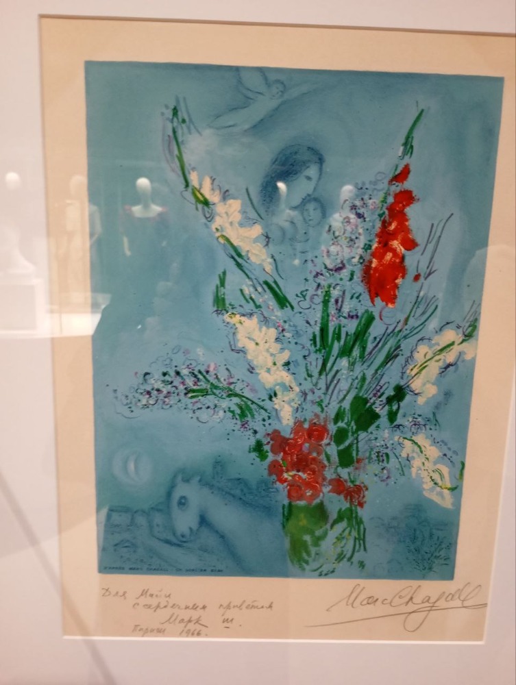 Майю Плисецкую называли иконой стиля, она стала источником вдохновения для многих поэтов, художников, скульпторов, фотографов, модельеров. Следующий этап экспозиции, озаглавленный «Муза художников и модельеров» включает в себя подлинные наряды от Ив Сен-Лорана, Пьера Кардена, Жана-Поля Готье. Серия работ Пьера Кардена представлена от шляпок и знакового маленького чёрного платья до балетных костюмов. В этой части раздела важно не пропустить две оригинальных графические работы Марка Шагала с дарственной надписью Майе Михайловне в знак уважения и дружбы (выставляются впервые).