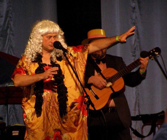 Ну да. И Соломаха в парике гастролирующей из Касимова в Тамбов звезды эстрады, и КВНная Олюся в военной форме с хитом "Ромашки спрятались", и проход по залу бородачей с гармошкой - это все номера, конечно. Сейчас, чуть пониже - философия по этому поводу...