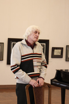 — Мне хочется увидеть реакцию зрителя, — начал Сергей Ковригин. — Хотя графика очень условный и напряжённый вид творчества — её нужно рассматривать, а значит, зритель должен быть довольно внимателен. Если художник решается публиковать какую-то часть своего мира, то он, конечно, ждёт зрителя, который хотя бы постарается в него проникнуть. Всегда приятно встретить зрителя, который пришёл на выставку и как будто разговаривает с твоей картиной, находит вибрации, которые вызывают в нём внутренний диалог с этой работой. Главное нравственное качество картины в том, что она всегда молчит, а откликается только тогда, когда зритель этого хочет… У Тарковского как-то спросили: «Несёте ли вы ответственность за то, что делаете?». Он ответил: «50% — несу, остальное — отдаю». То есть важно, чтобы зритель сам работал, и я с этим полностью согласен. Думаю, что графика более всего соответствует этому пожеланию — если хочешь что-то увидеть, ты должен быть более внимателен. Ведь графика, как сама тишина, подробна.