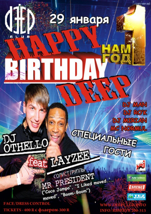 29 января 2011 года первый день рождения клуба. Поздравляли: DJ Othello & Layzee (Mr. President).